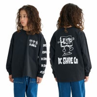 コメント:キックフリップをきめるDCスターロゴのキャラクターがキャッチーな長袖Tシャツ。膨らみのある発泡プリントを採用し、ユニークなグラフィティアートをより印象的に仕上げました。生地には肌触りの柔らかなコットンジャージー素材を使用。ゆったりとしたシルエットが、コーディネートに程よいルーズ感を加えます。親子でのリンクコーデにも取り入れやすいアイテム。