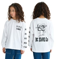 コメント:キックフリップをきめるDCスターロゴのキャラクターがキャッチーな長袖Tシャツ。膨らみのある発泡プリントを採用し、ユニークなグラフィティアートをより印象的に仕上げました。生地には肌触りの柔らかなコットンジャージー素材を使用。ゆったりとしたシルエットが、コーディネートに程よいルーズ感を加えます。親子でのリンクコーデにも取り入れやすいアイテム。
