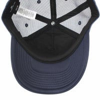 特 徴 :フロントの柔らかいポリエステルフォーム生地と、サイドと後部のメッシュ素材が特徴のキャップ。5パネル、半カーブブリム仕様。スナップバックによってサイズ調整可能。ワードロゴタイプとシーズングラフィックタイプ、どちらのデザインもキャッチーで目を引きます。