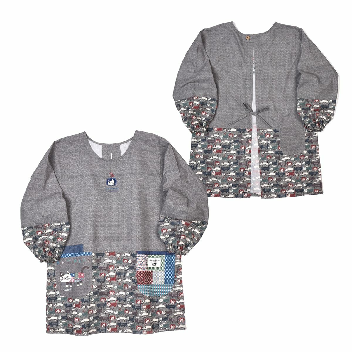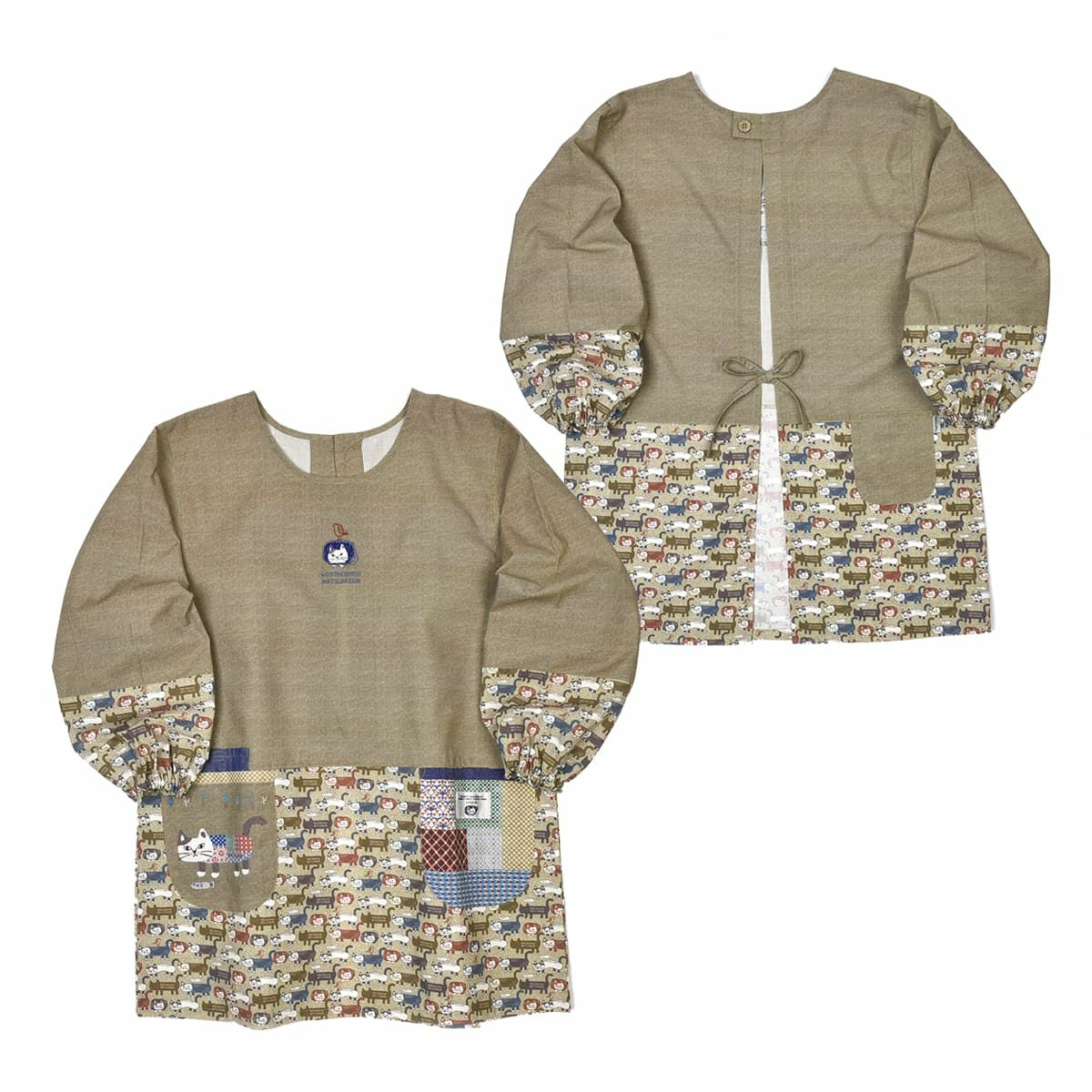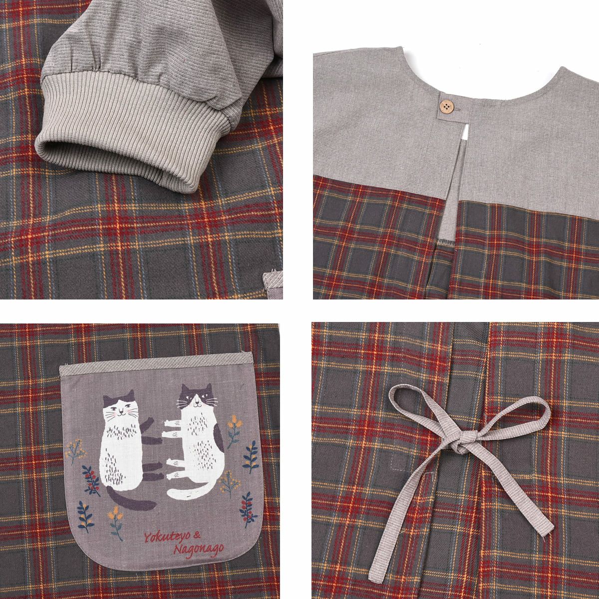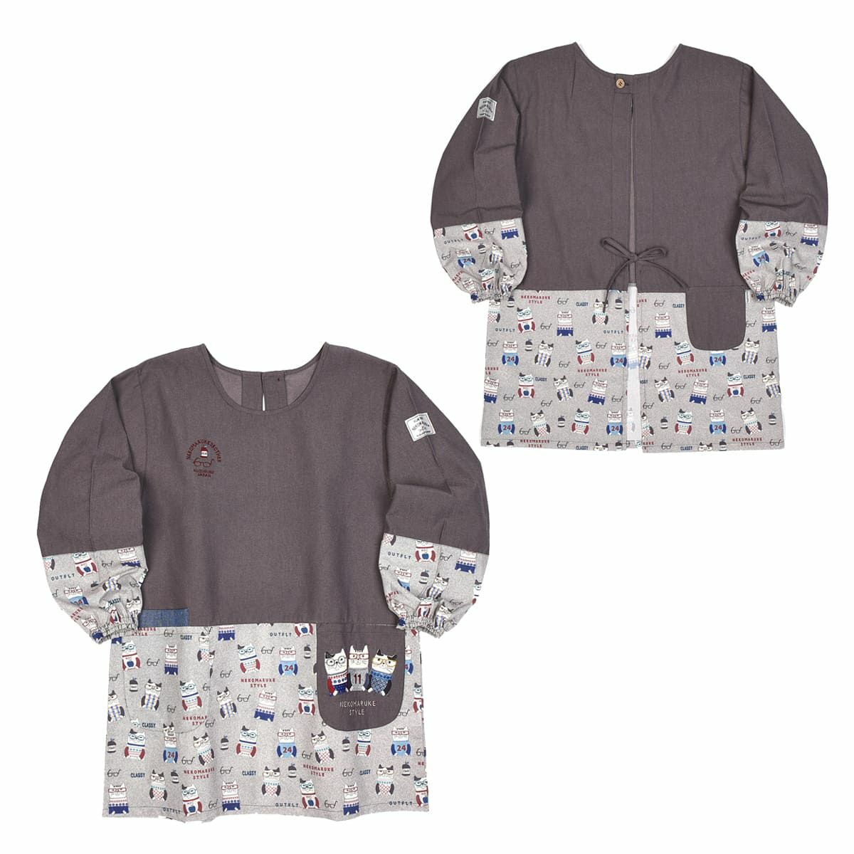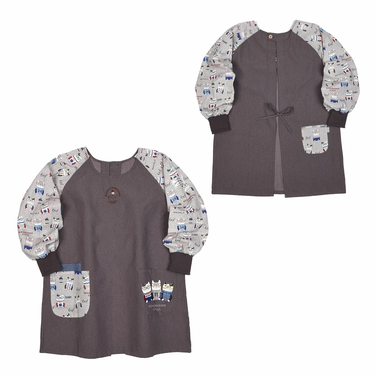 割烹着 前開き おしゃれ 保育士 カッポウ 24AW エプロンアラカルト ネコまるけ スモック 24-7560 クスグルジャパン 割烹着 レディース