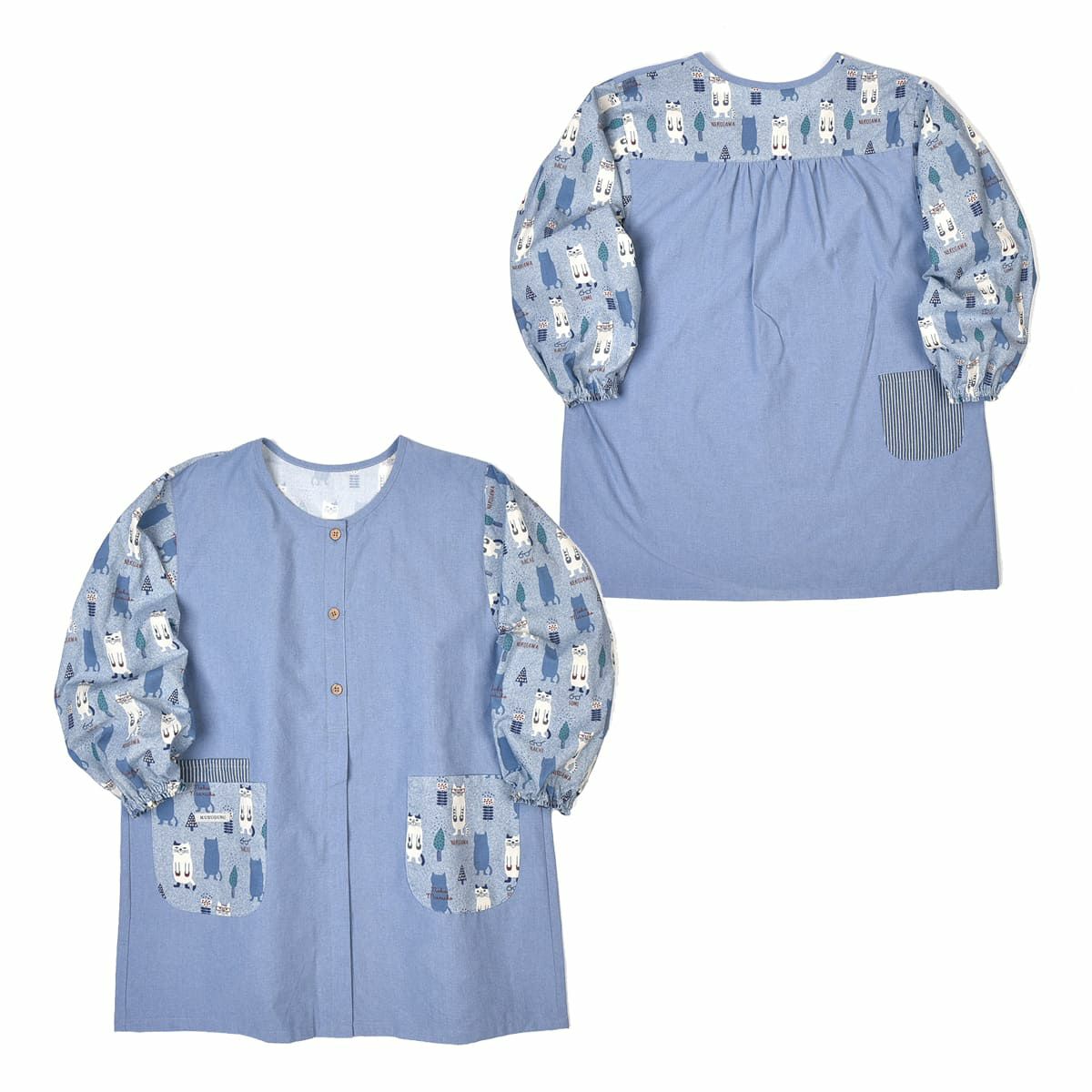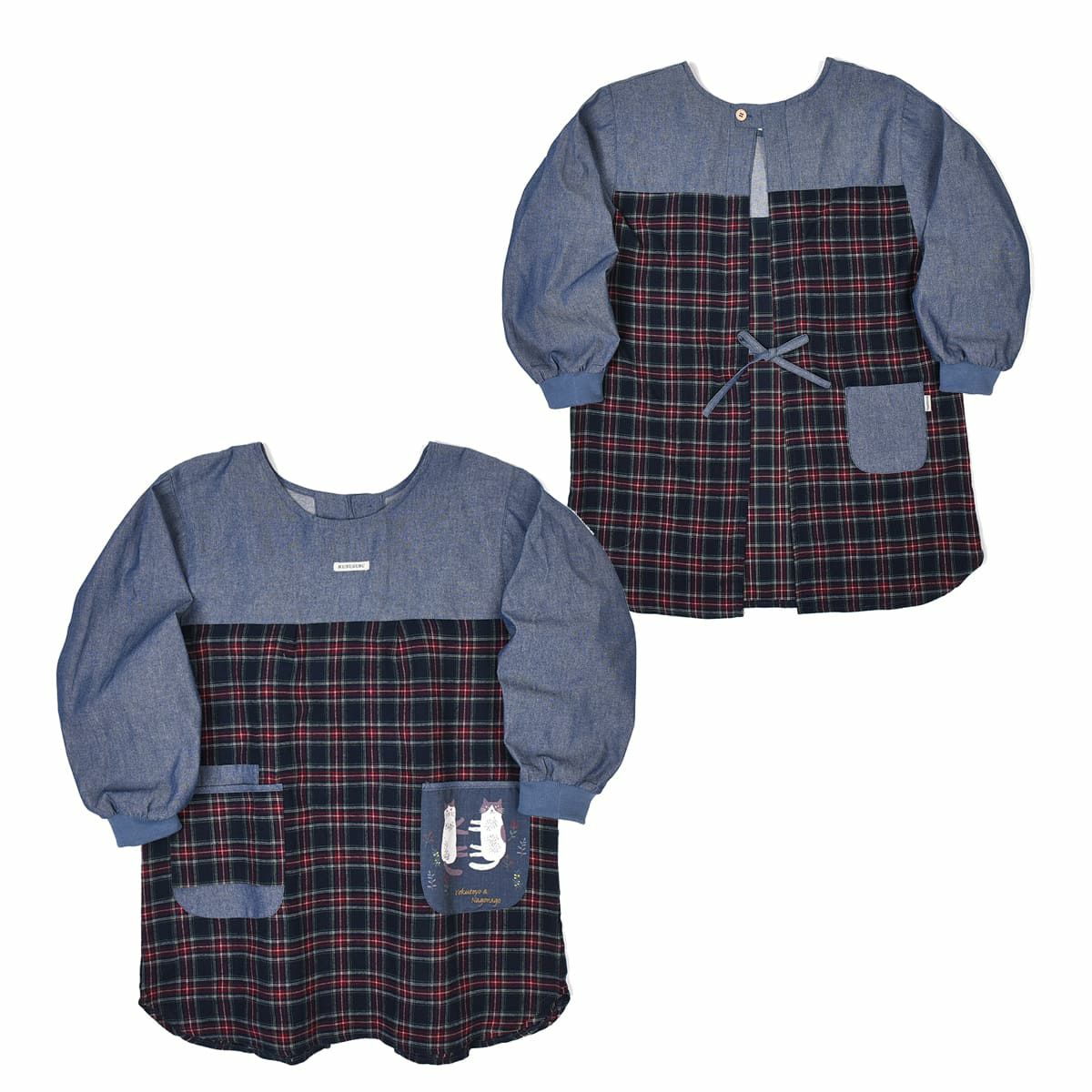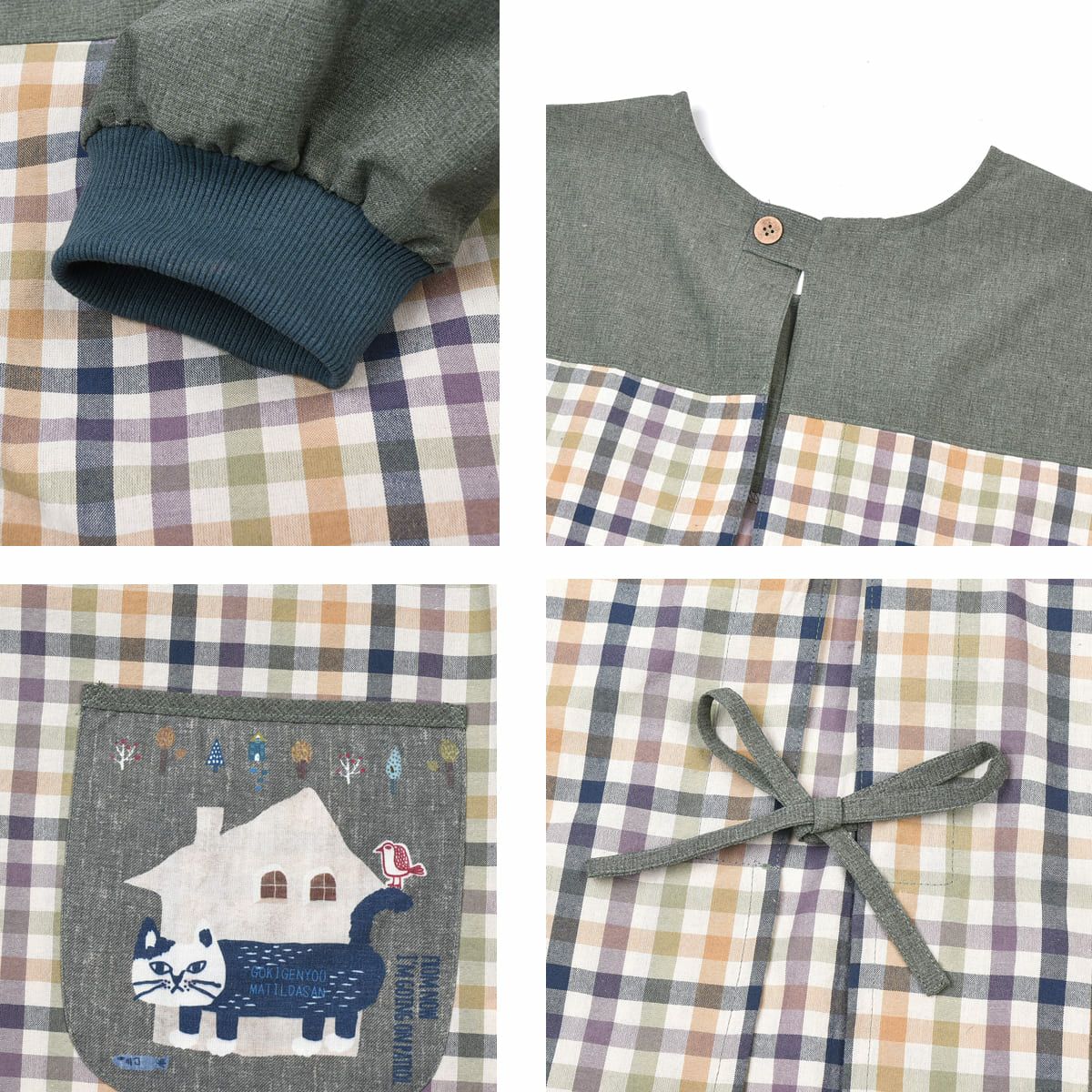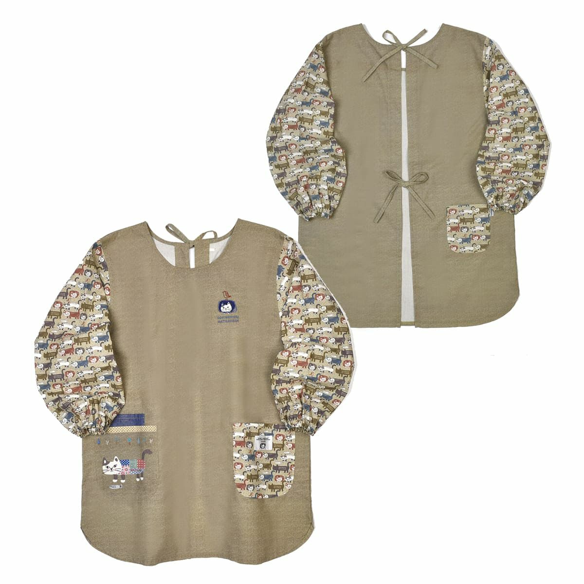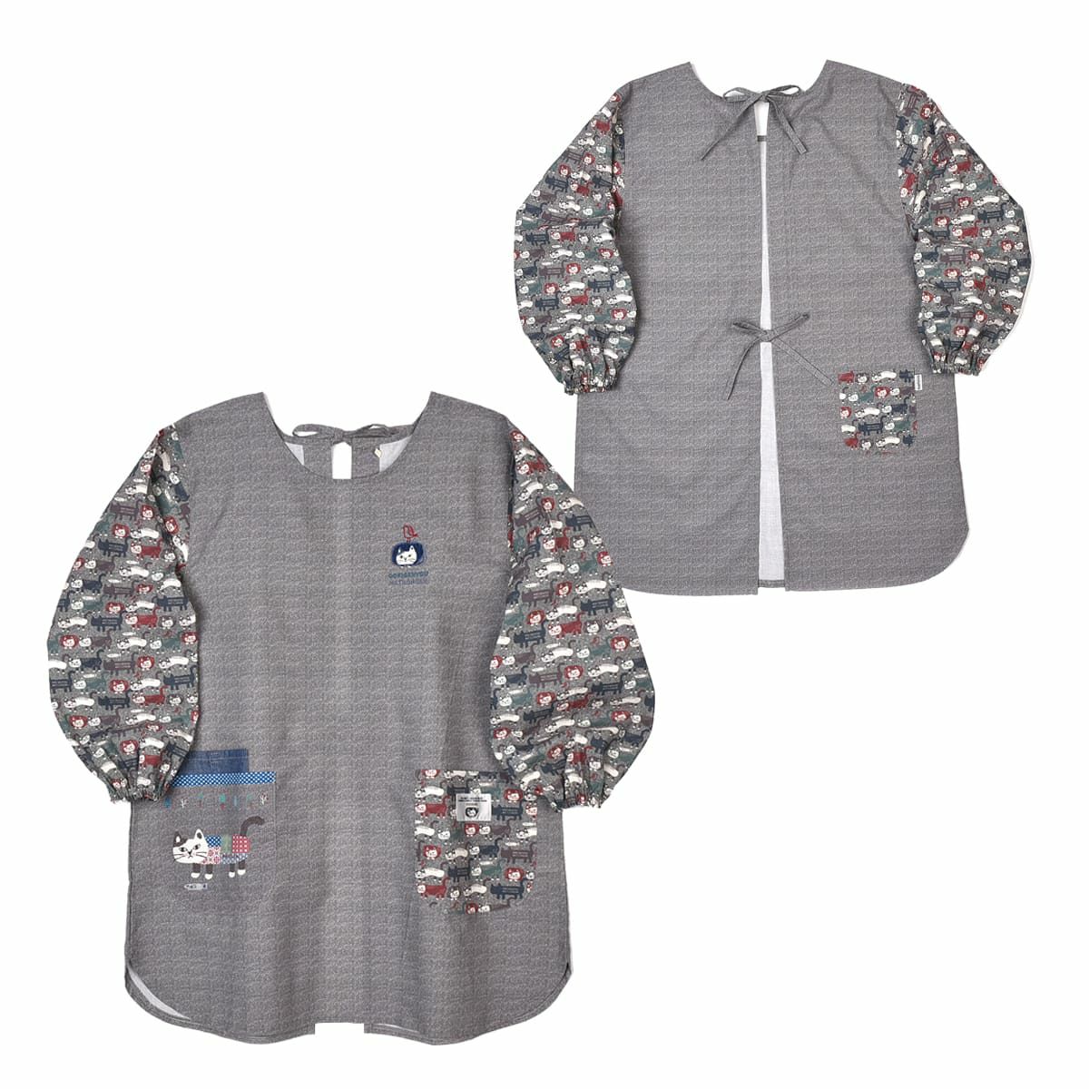 割烹着 前開き おしゃれ 保育士 カッポウ 24AW エプロンアラカルト ネコまるけ スモック 24-7560 クスグルジャパン 割烹着 レディース
