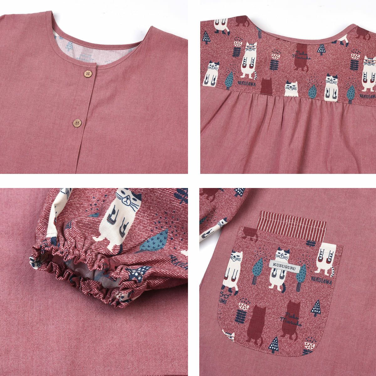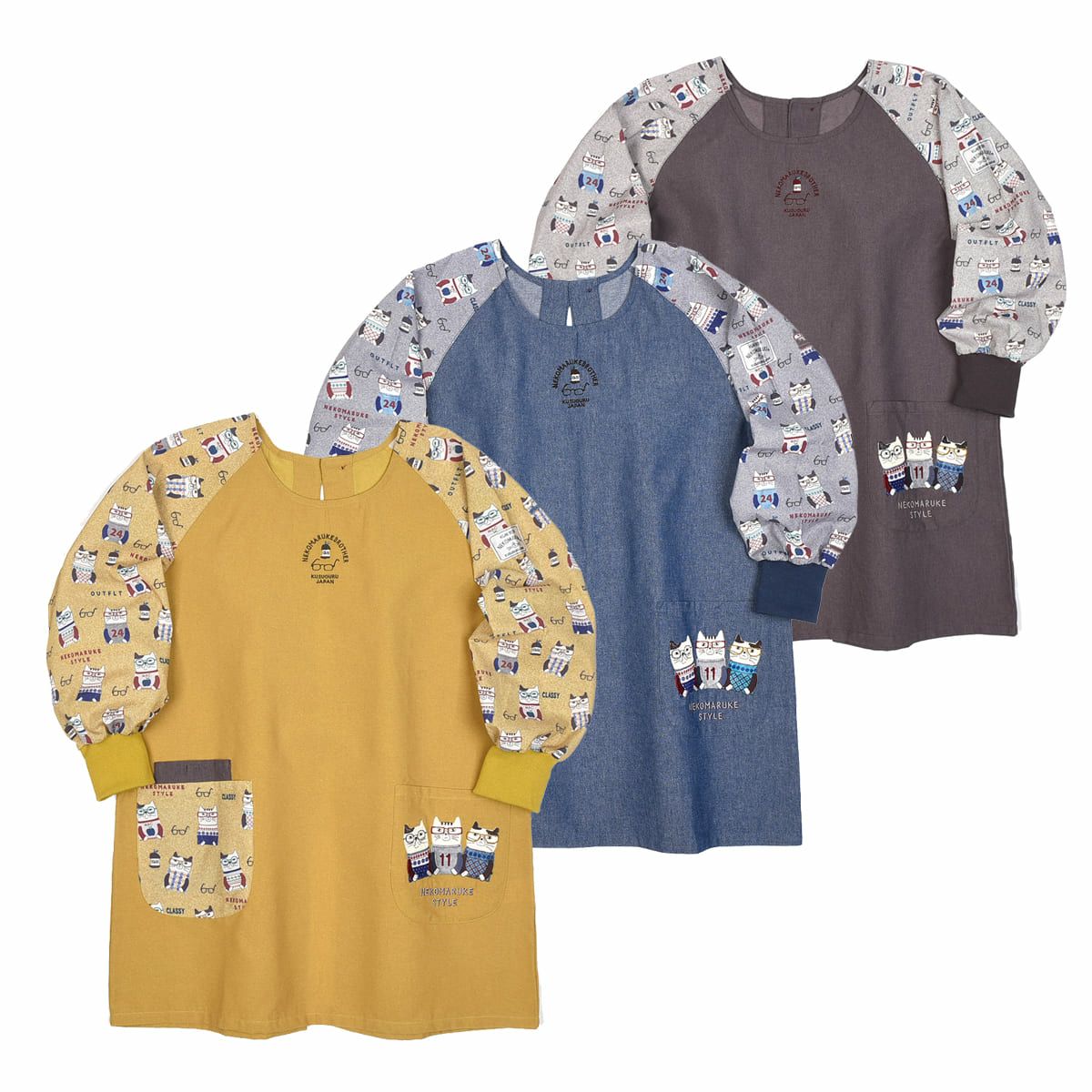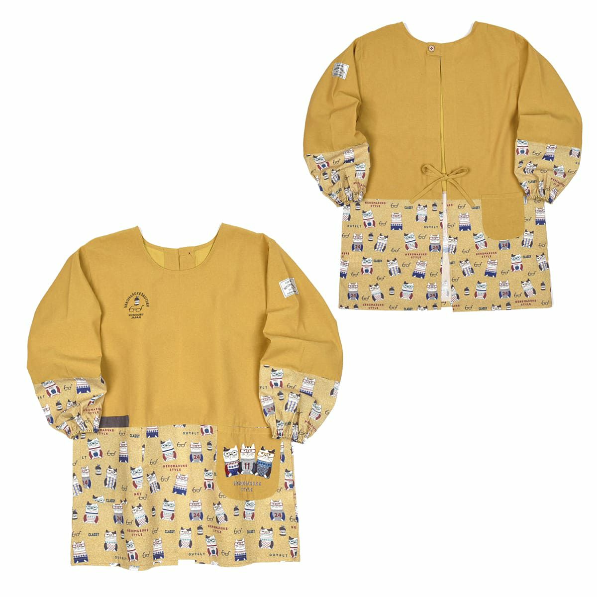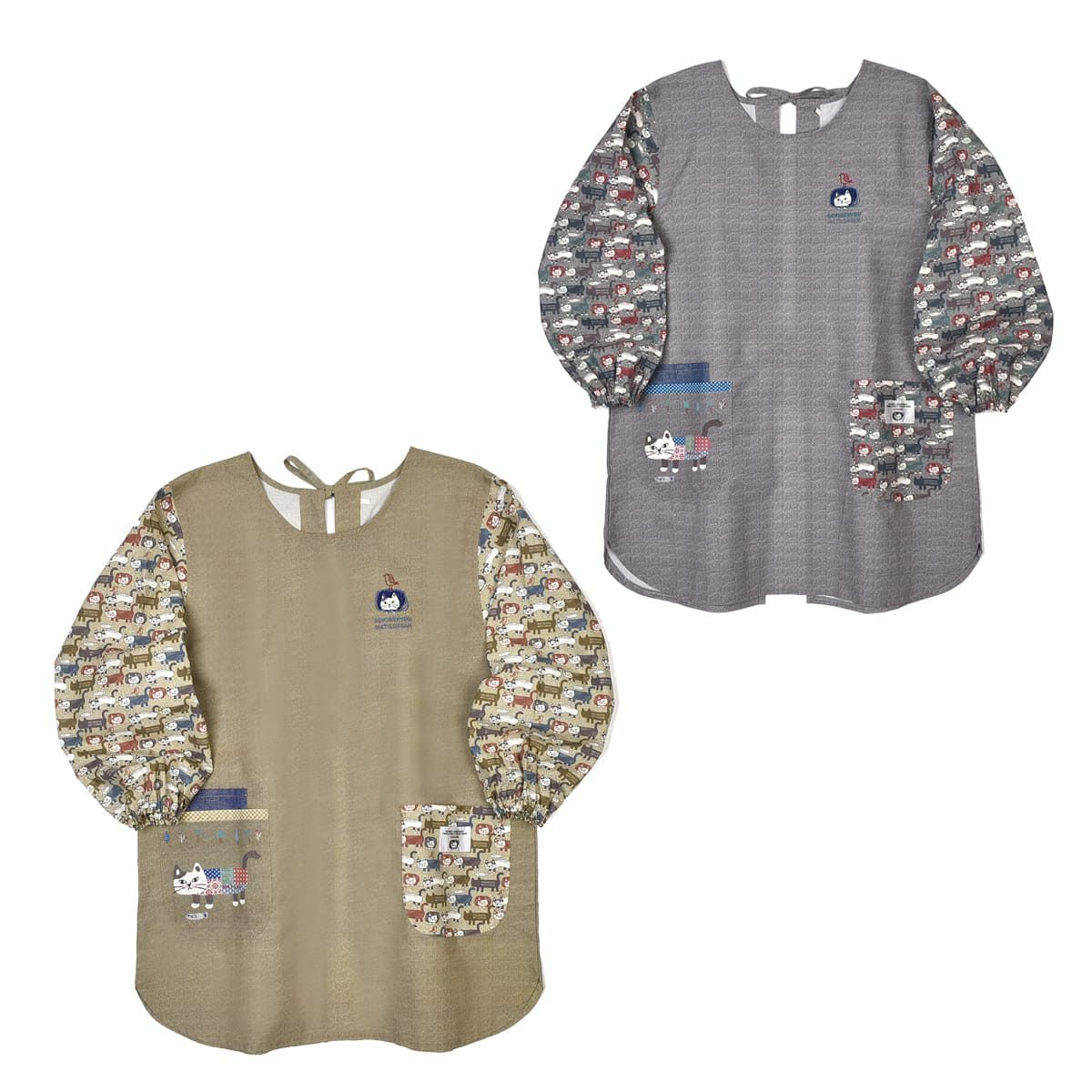 割烹着 前開き おしゃれ 保育士 カッポウ 24AW エプロンアラカルト ネコまるけ スモック 24-7560 クスグルジャパン 割烹着 レディース