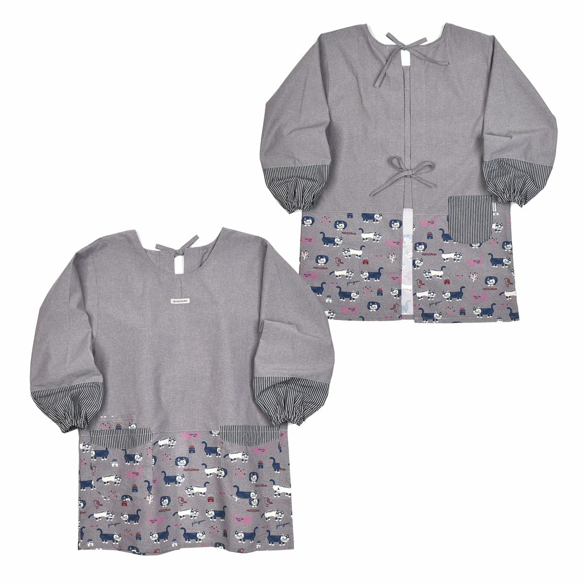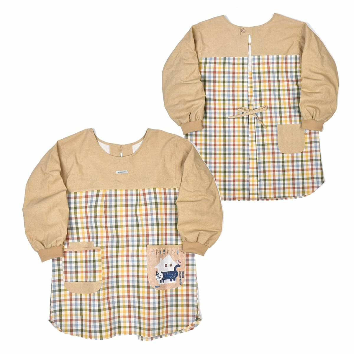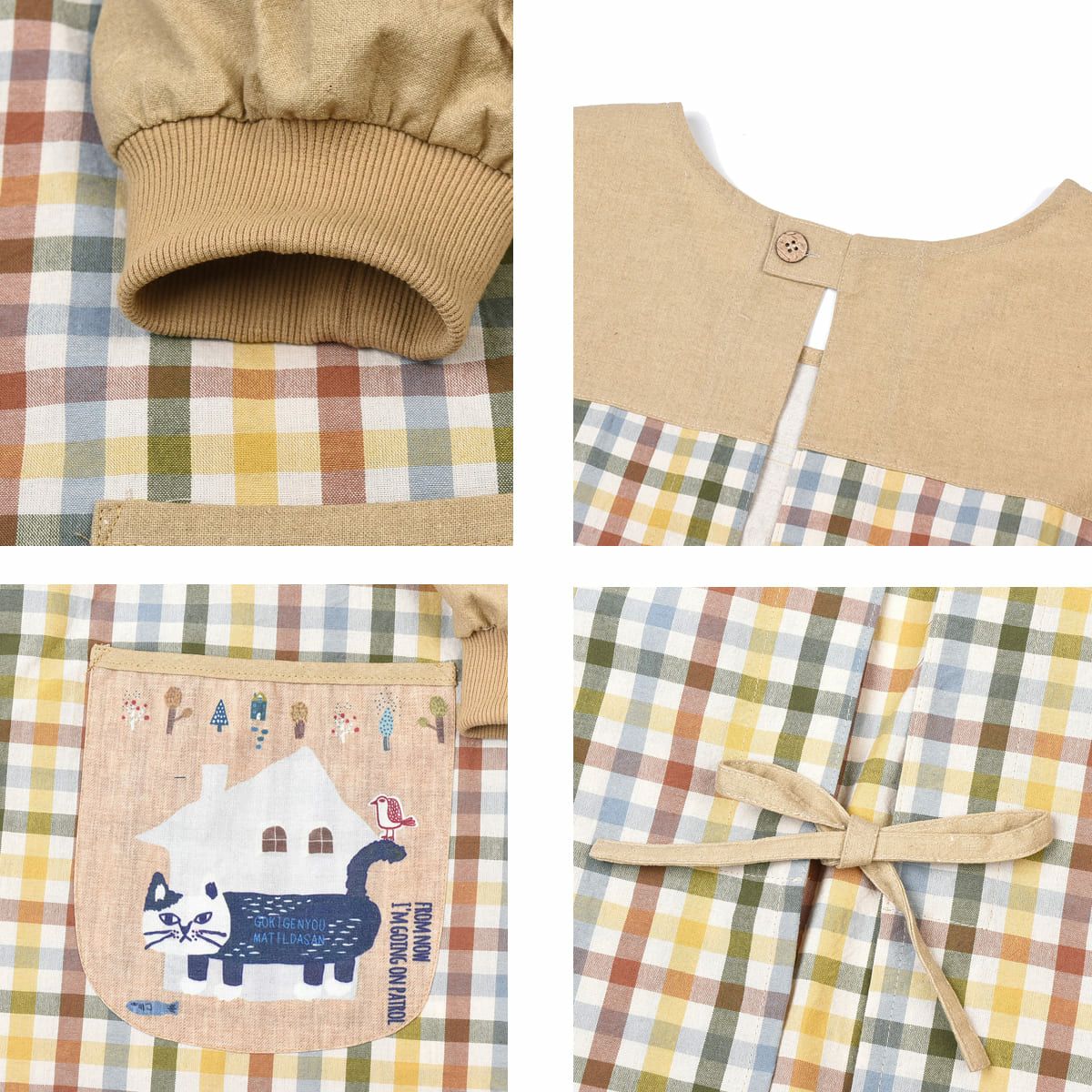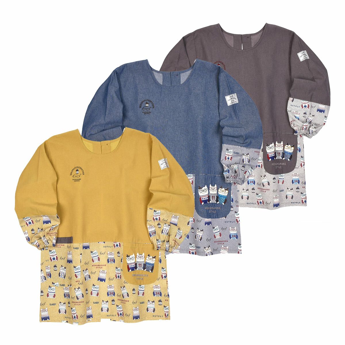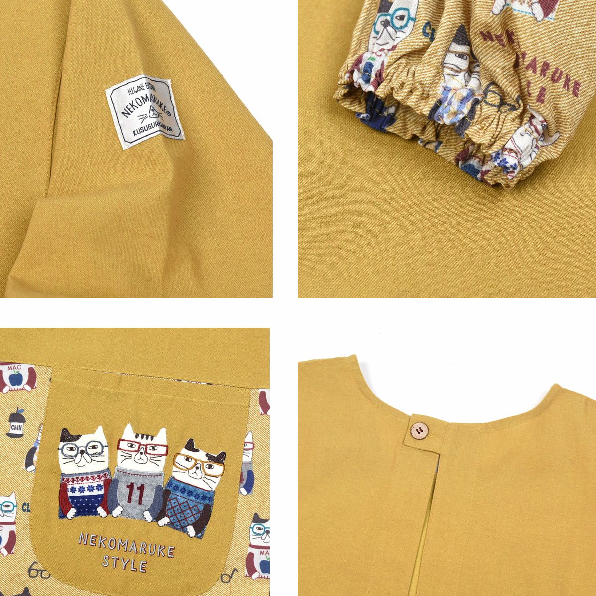 割烹着 前開き おしゃれ 保育士 カッポウ 24AW エプロンアラカルト ネコまるけ スモック 24-7560 クスグルジャパン 割烹着 レディース