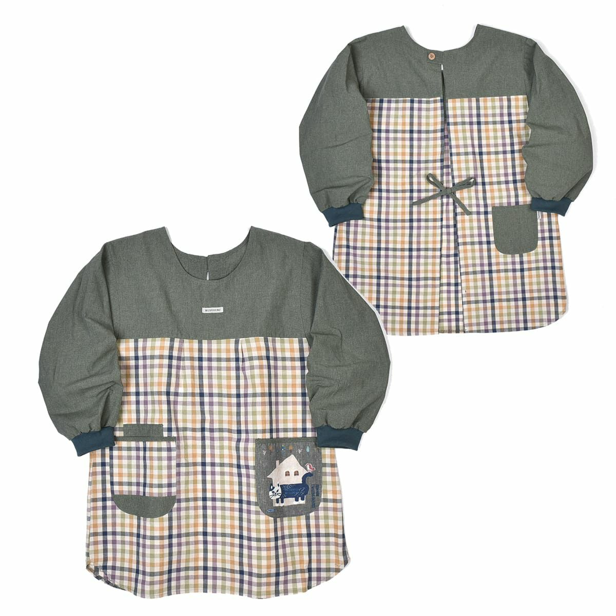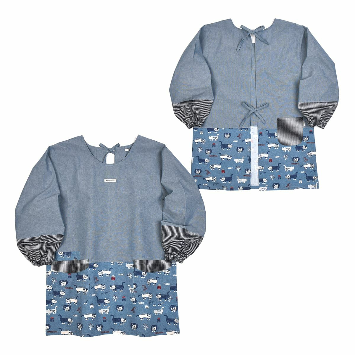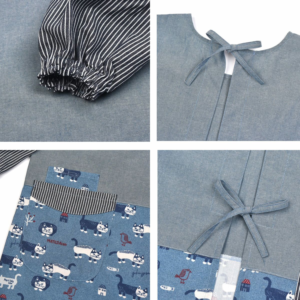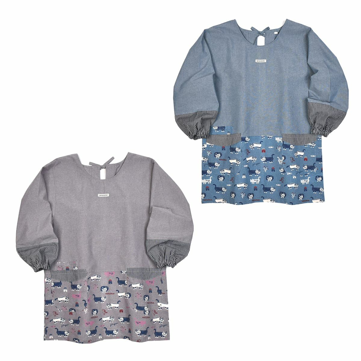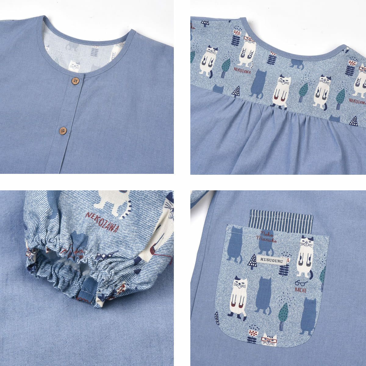 割烹着 前開き おしゃれ 保育士 カッポウ 24AW エプロンアラカルト ネコまるけ スモック 24-7560 クスグルジャパン 割烹着 レディース