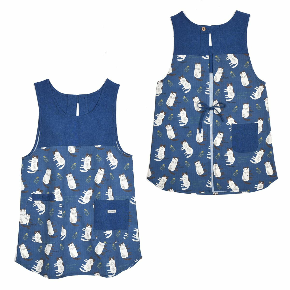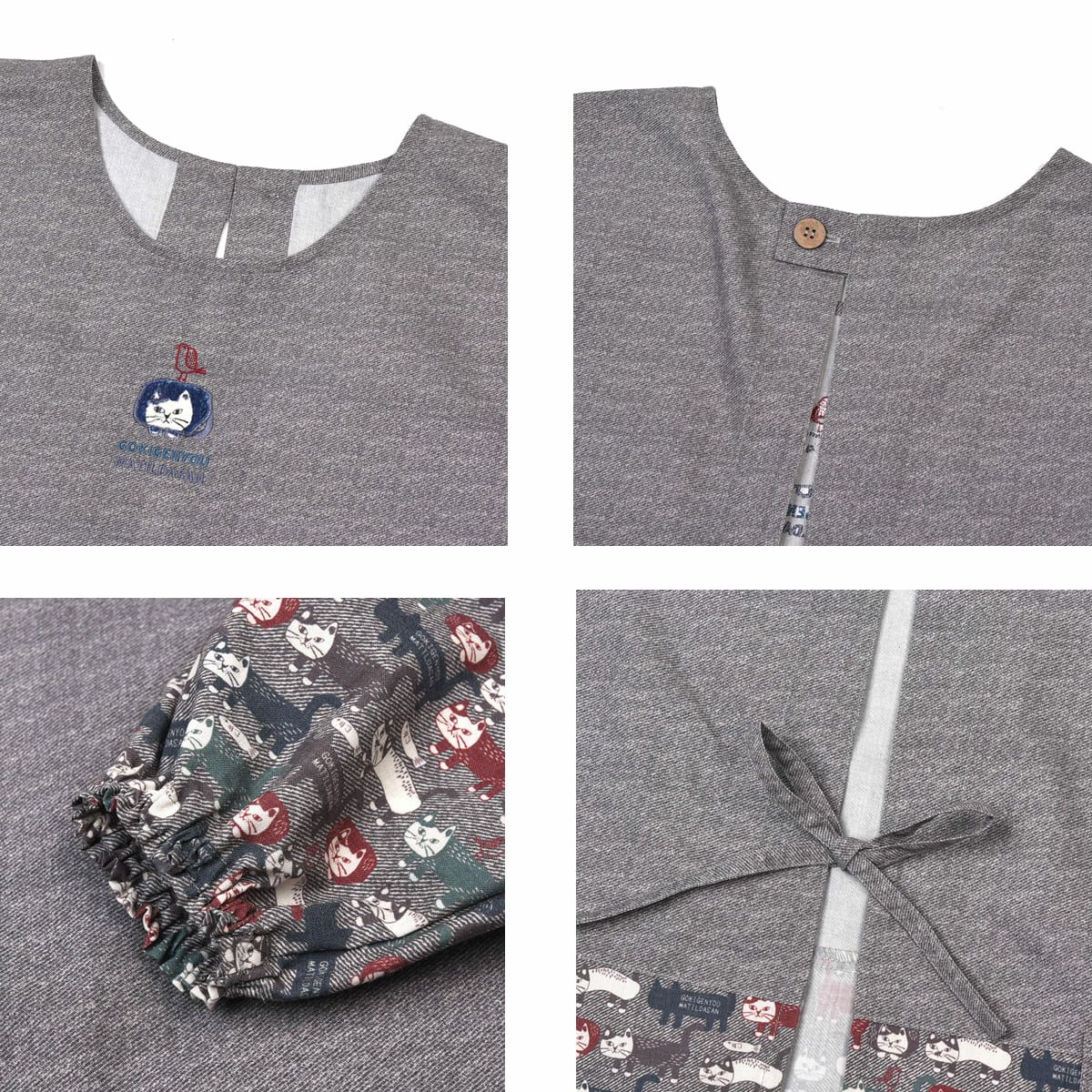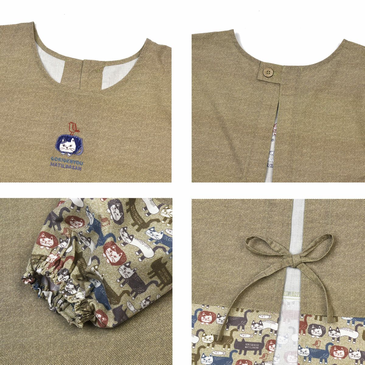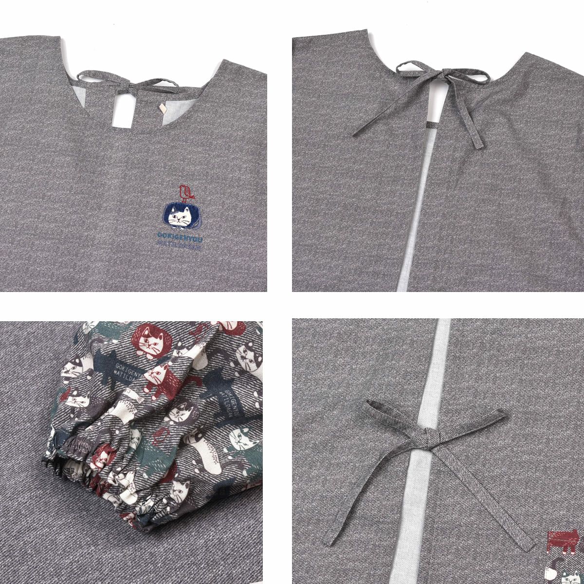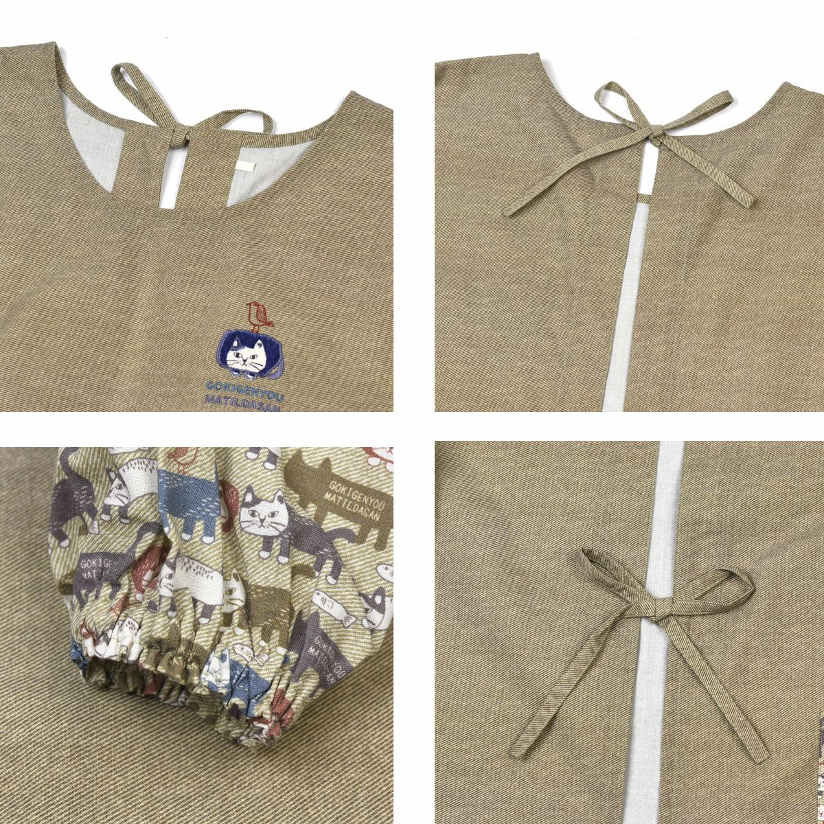 割烹着 おしゃれ 保育士 エプロン カッポウ 24AW ネコまるけ 釦リボンあきカッポウ 24-7504 クスグルジャパン 割烹着 レディース