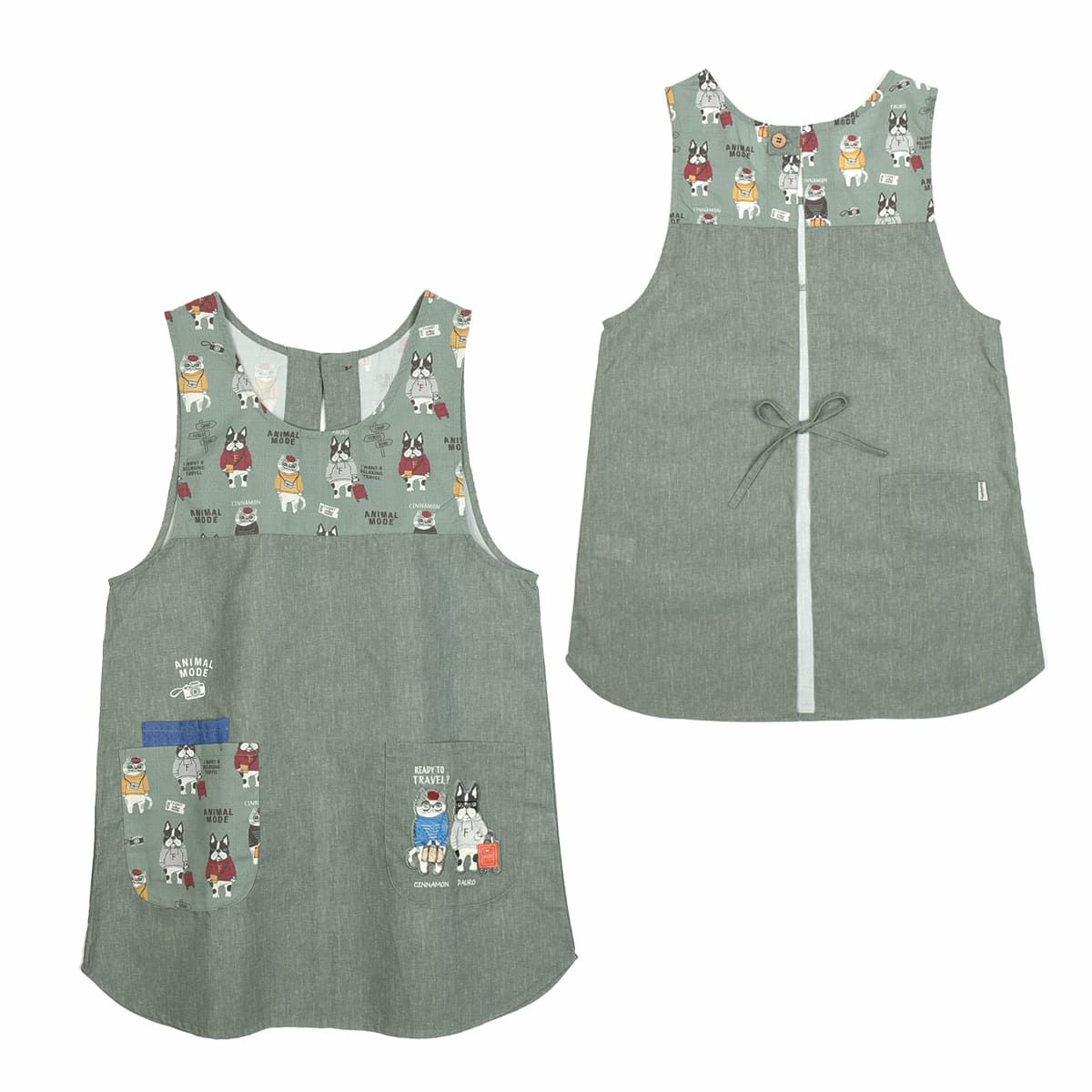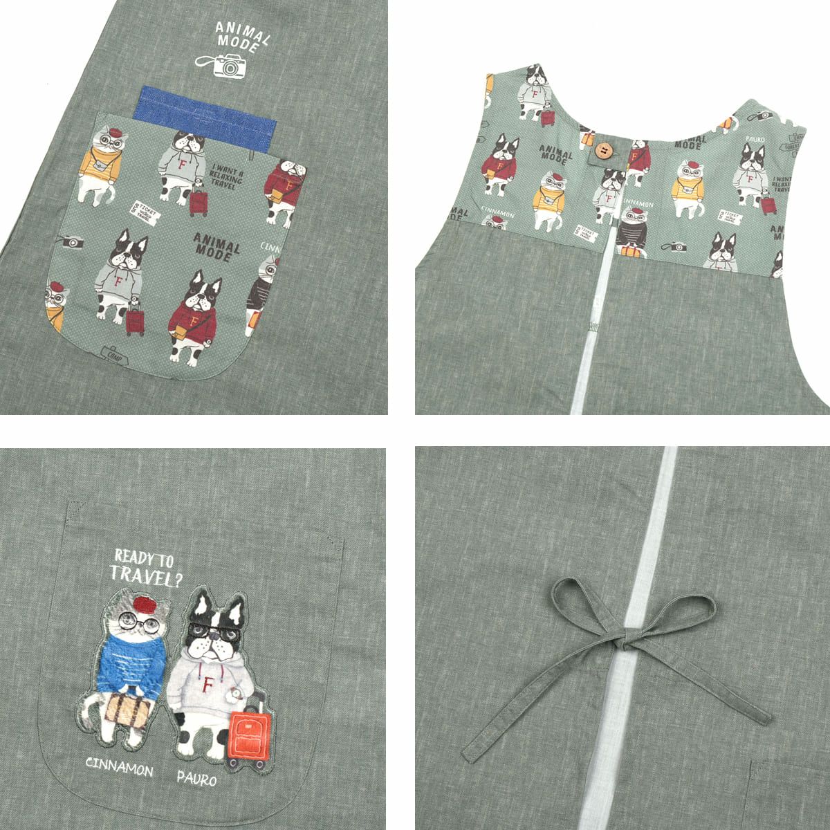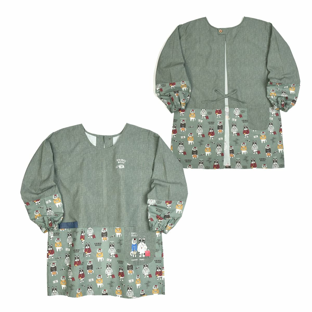 割烹着 おしゃれ 保育士 エプロン カッポウ 24AW アニマルモード 釦リボンあきカッポウ 24-7540 クスグルジャパン 割烹着 レディース