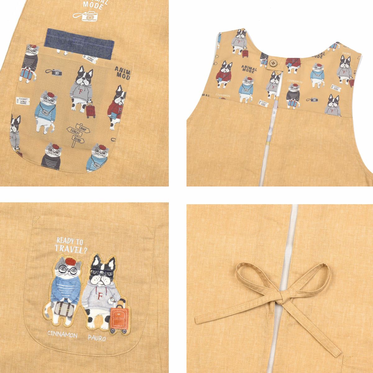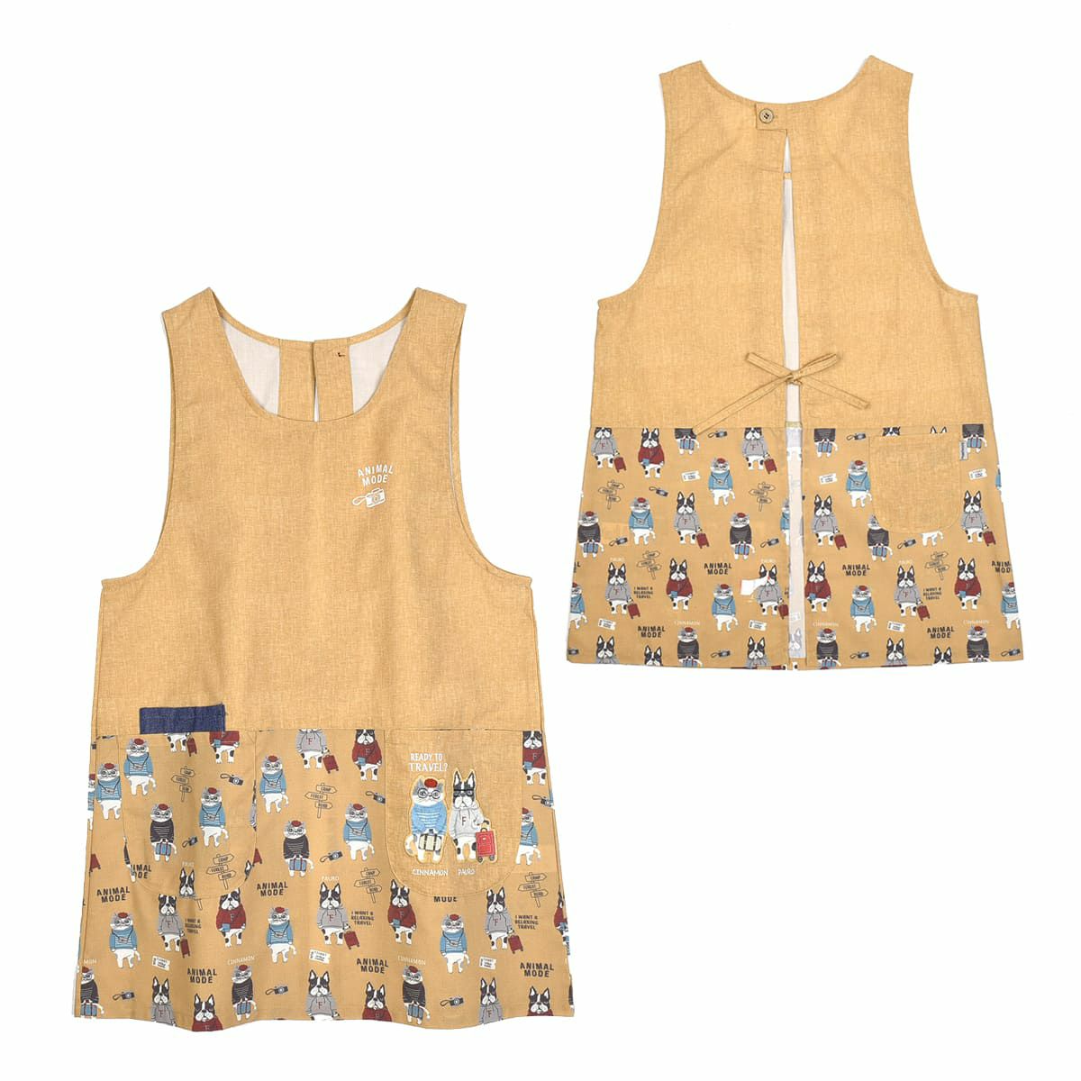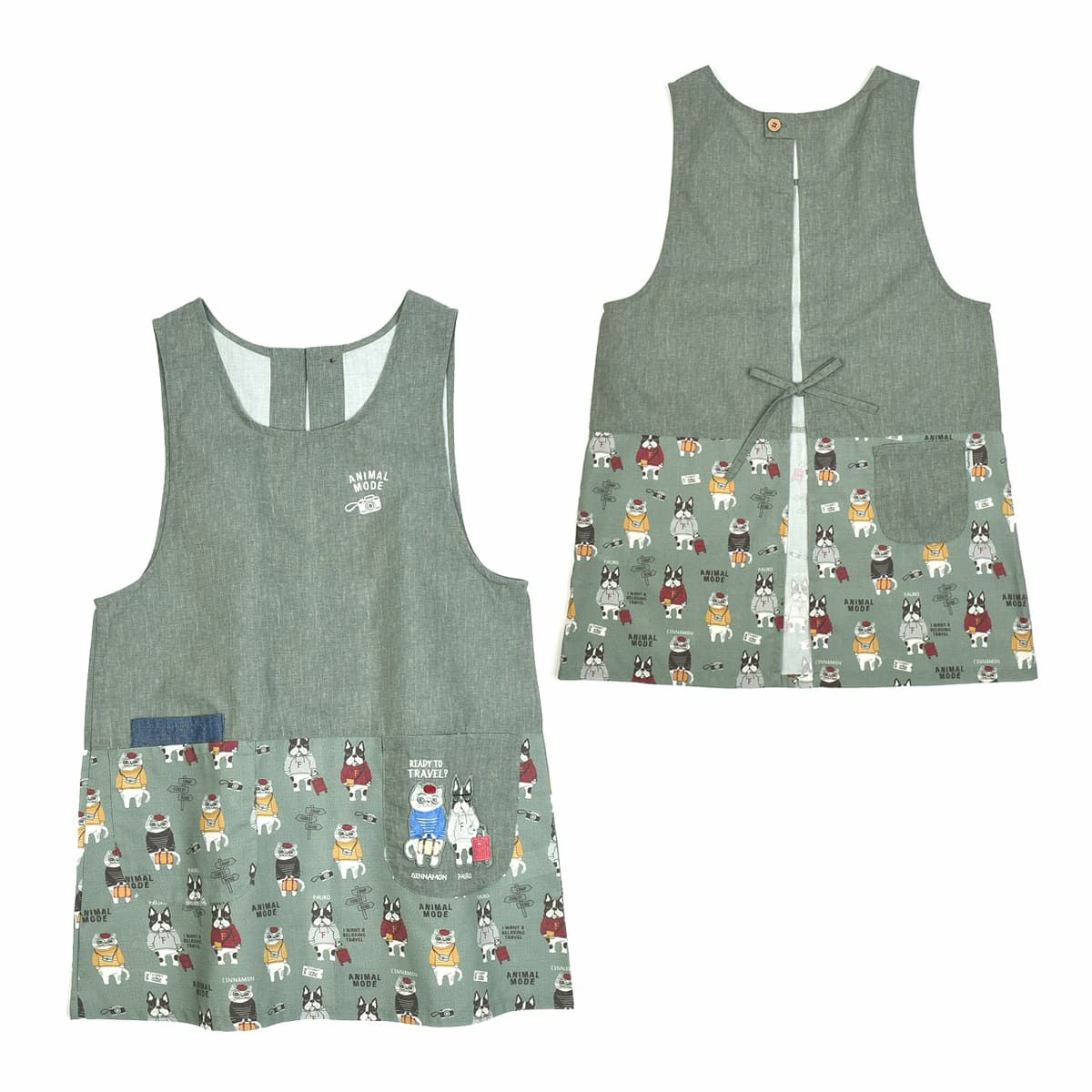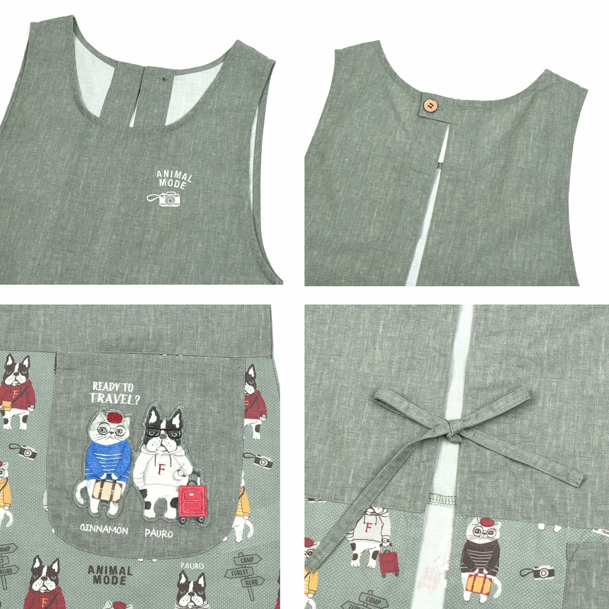 割烹着 おしゃれ 保育士 エプロン カッポウ 24AW アニマルモード 釦リボンあきカッポウ 24-7540 クスグルジャパン 割烹着 レディース