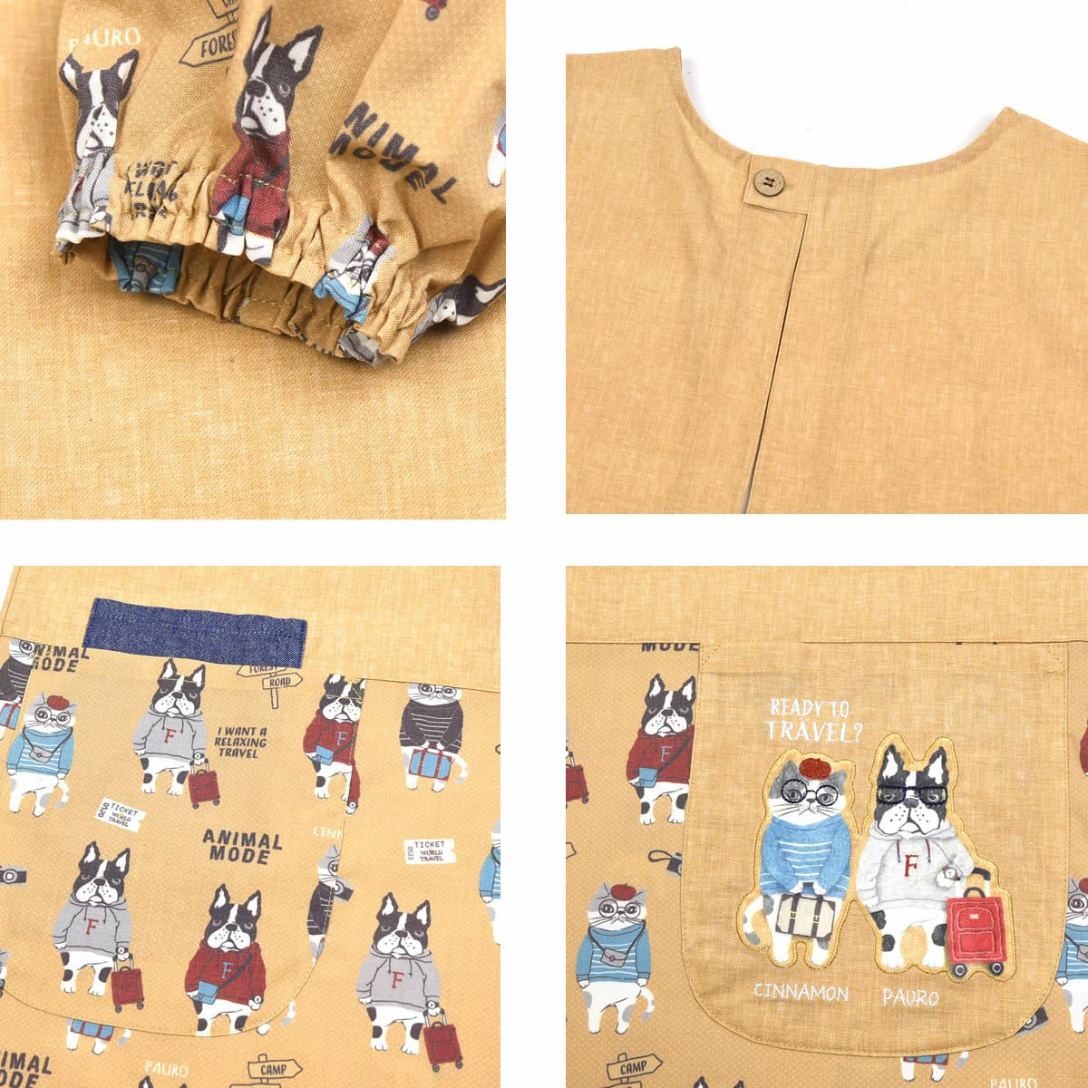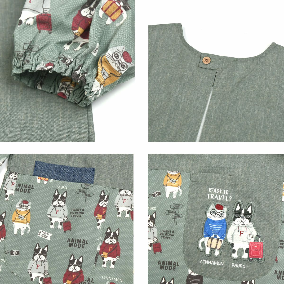 割烹着 おしゃれ 保育士 エプロン カッポウ 24AW アニマルモード 釦リボンあきリブカッポウ 24-7541 クスグルジャパン 割烹着 レディース