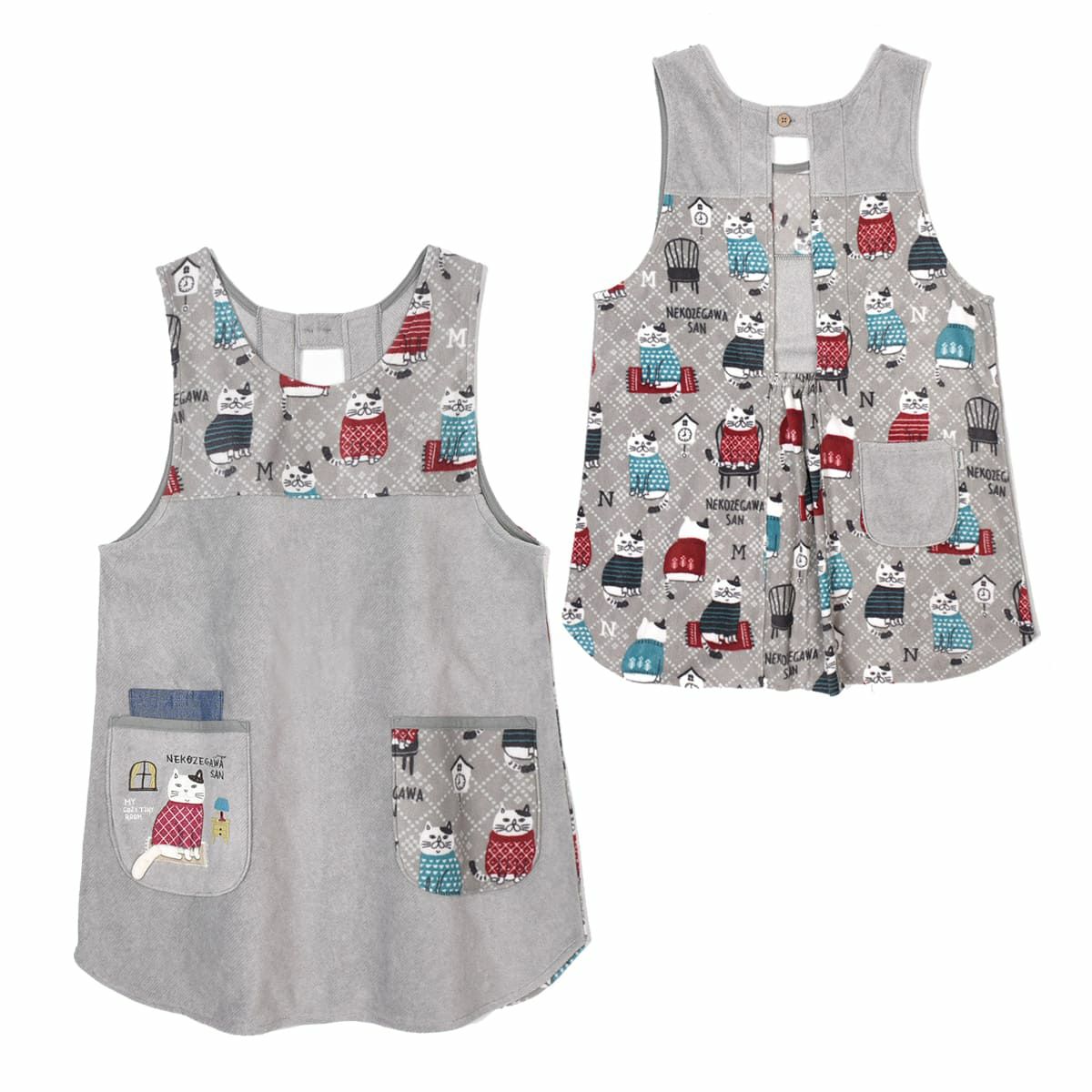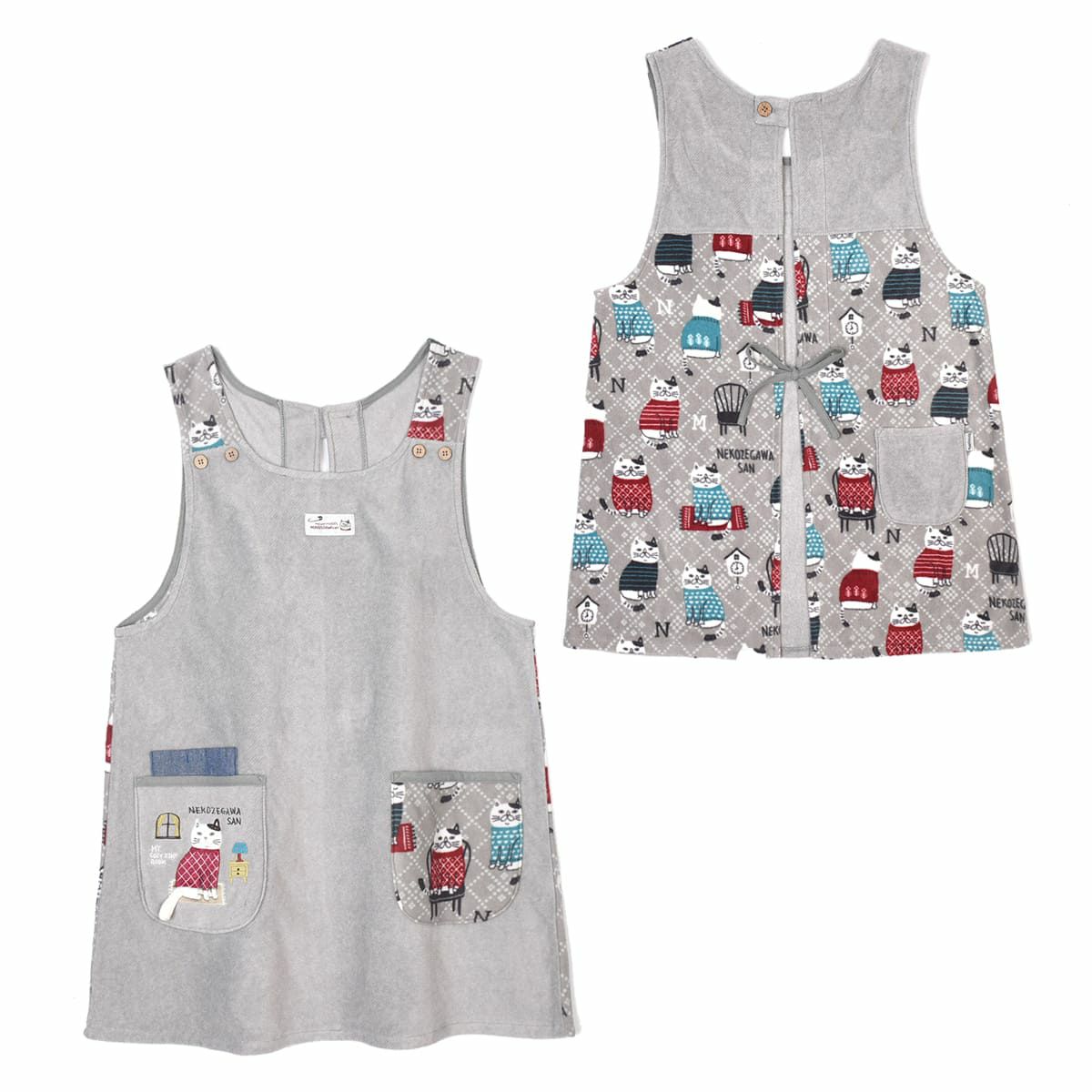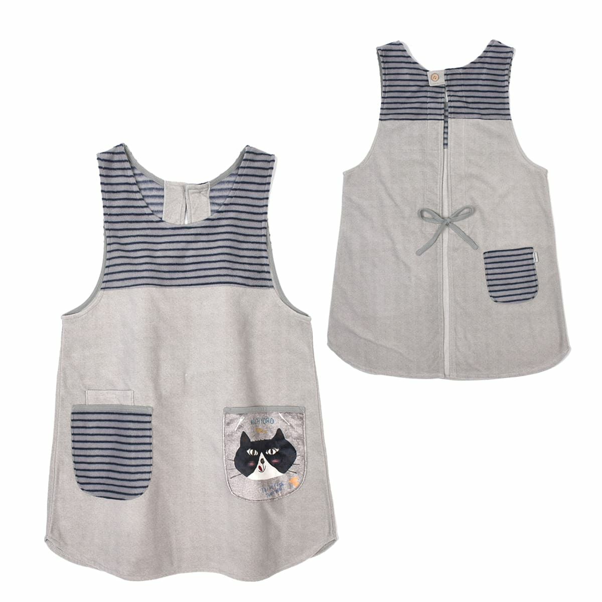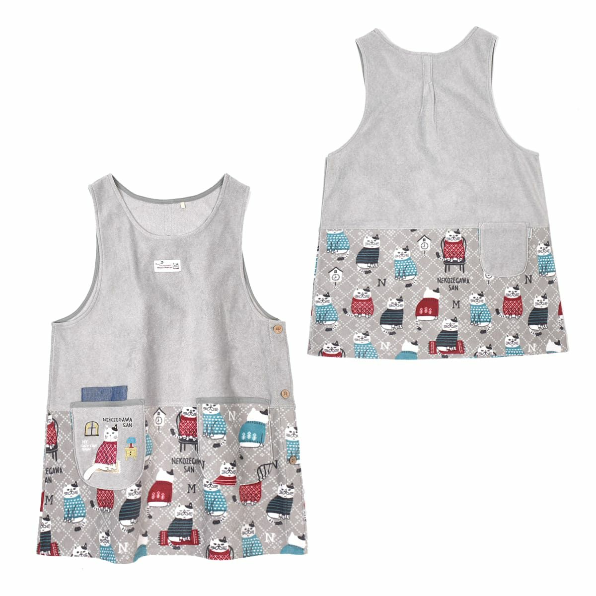 エプロン レディース フリーサイズ おしゃれ フリース 保育士 ねこぜがわさん 脇釦あき エプロン 24-7614 クスグルジャパン エプロン あたたかい 秋冬 フリース