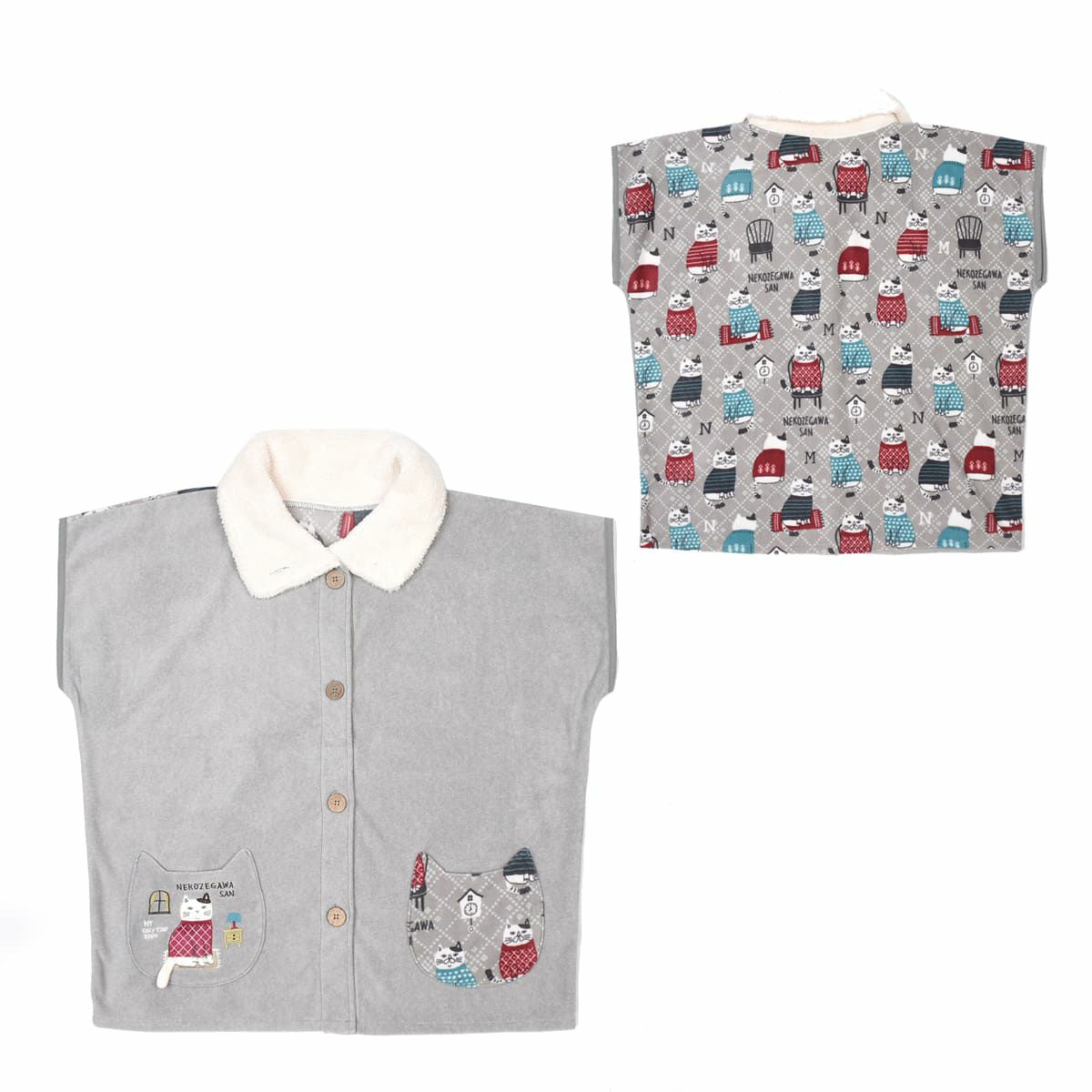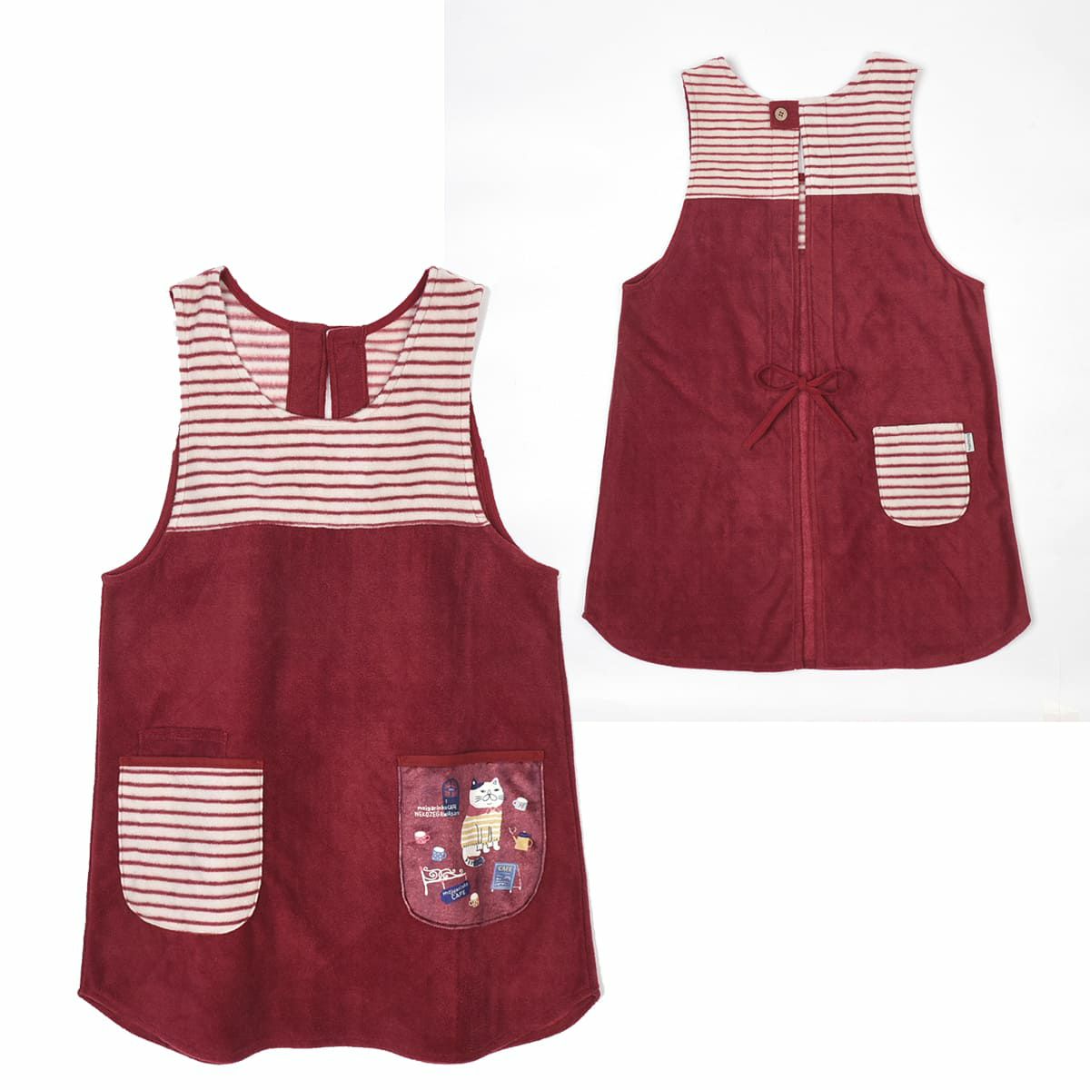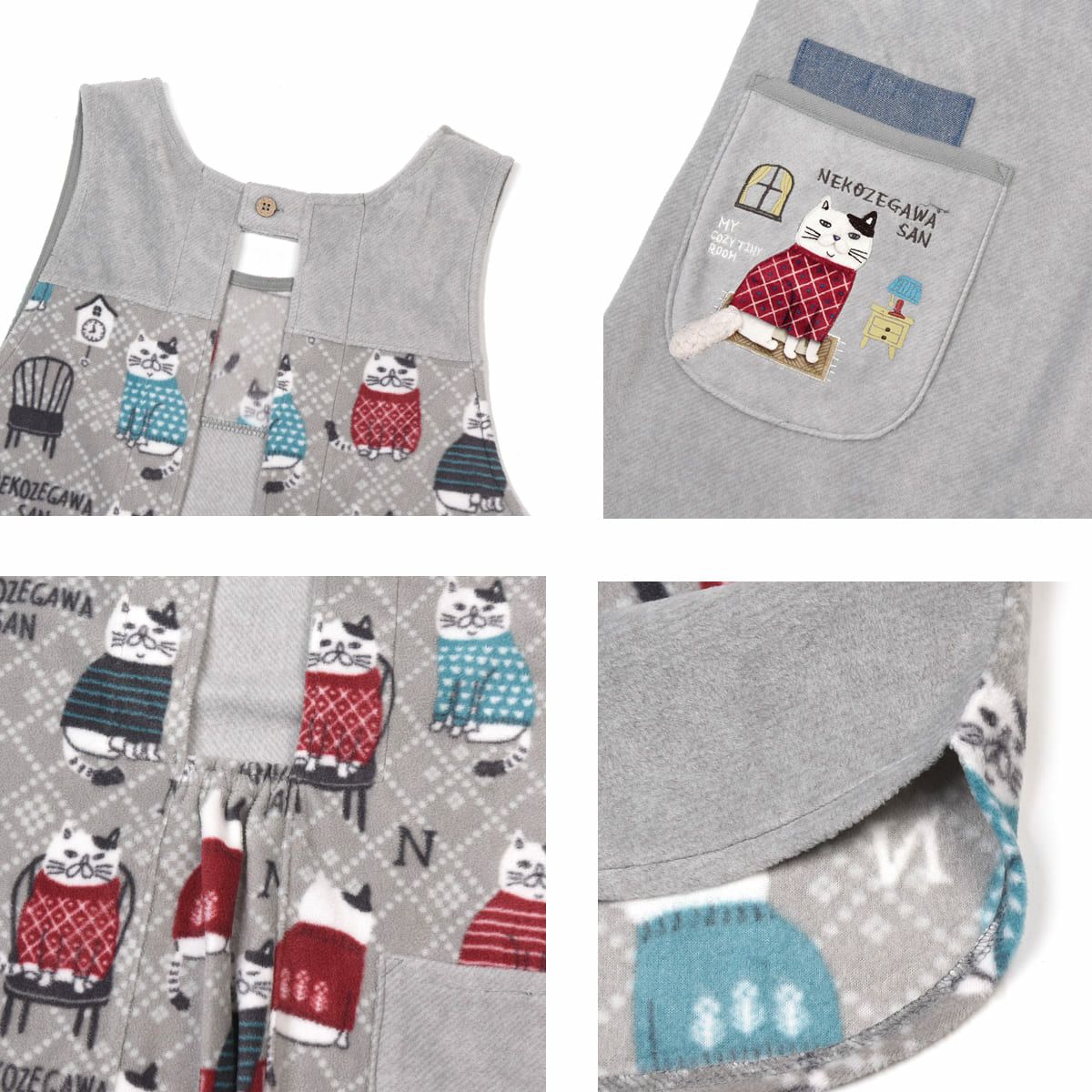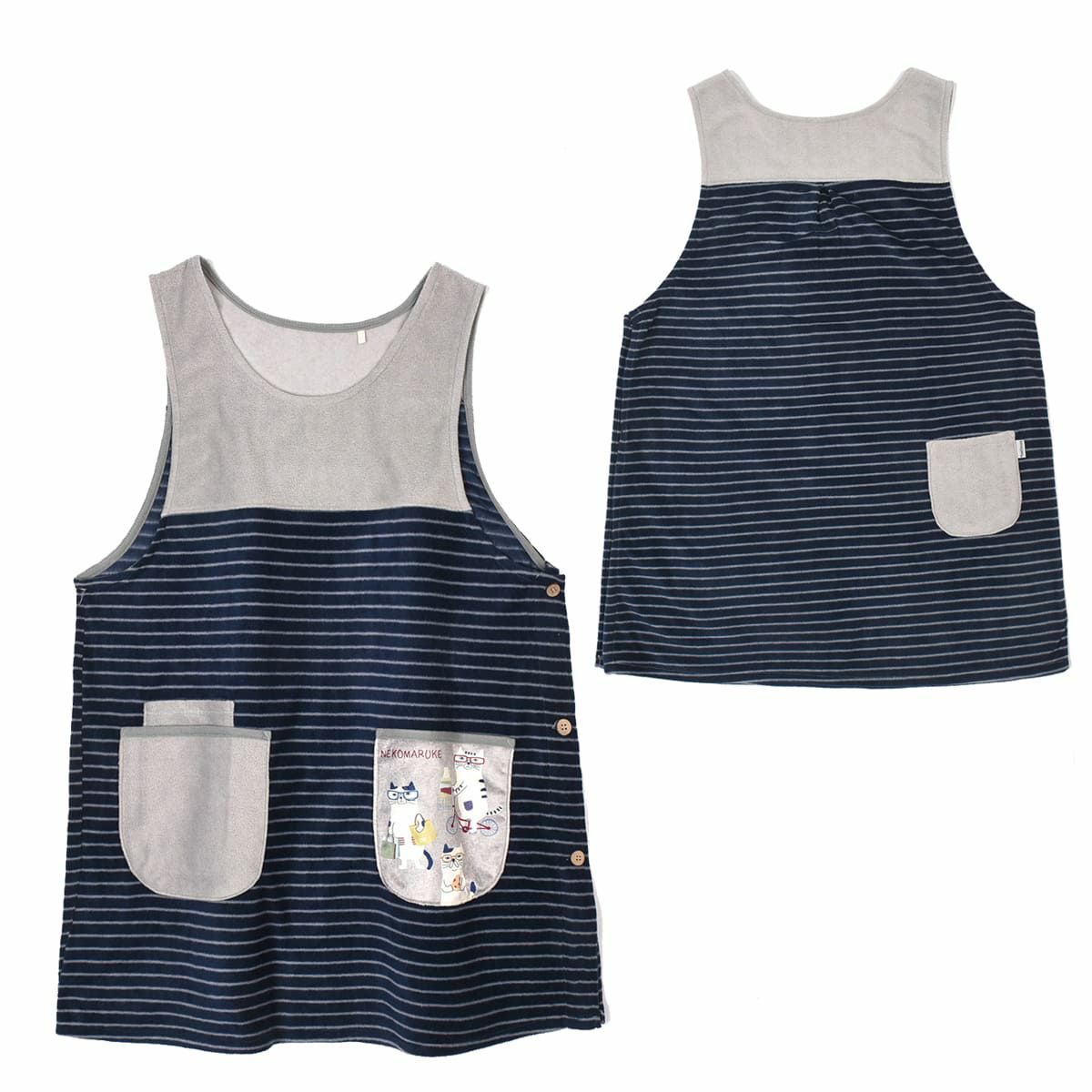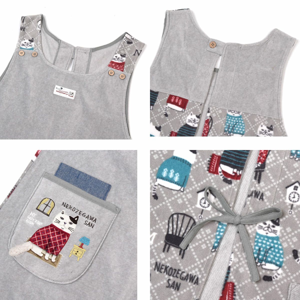 エプロン レディース フリーサイズ おしゃれ フリース 保育士 ねこぜがわさん 脇釦あき エプロン 24-7614 クスグルジャパン エプロン あたたかい 秋冬 フリース
