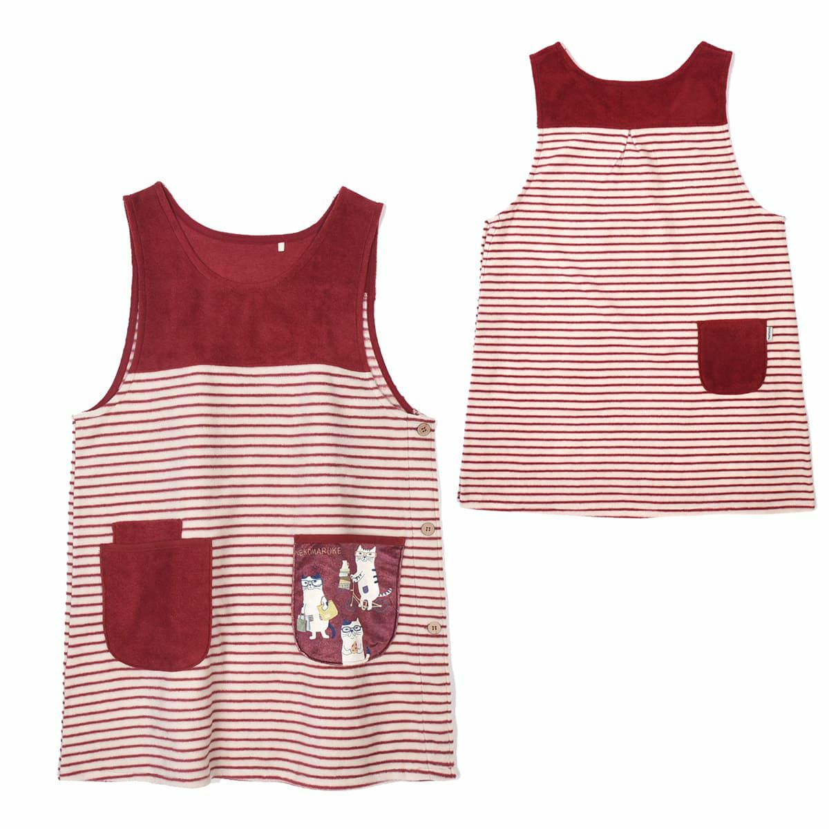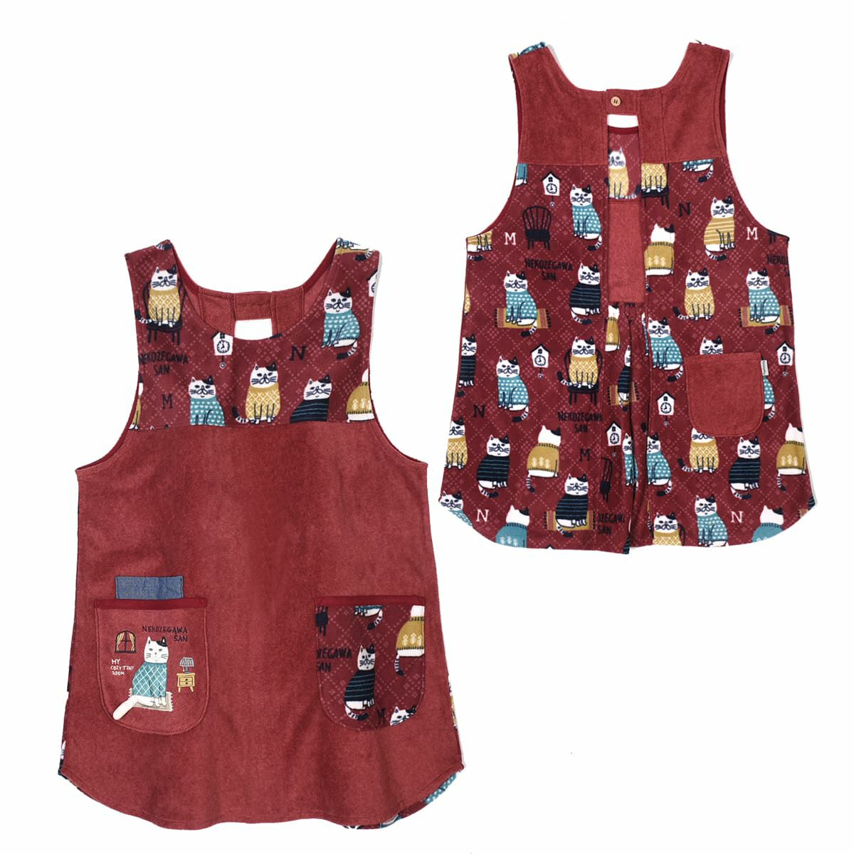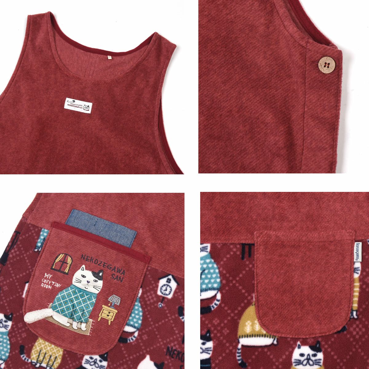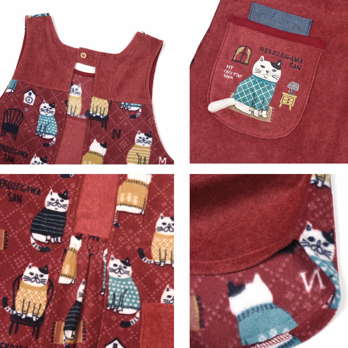 エプロン レディース フリーサイズ おしゃれ フリース 保育士 ねこぜがわさん 脇釦あき エプロン 24-7614 クスグルジャパン エプロン あたたかい 秋冬 フリース