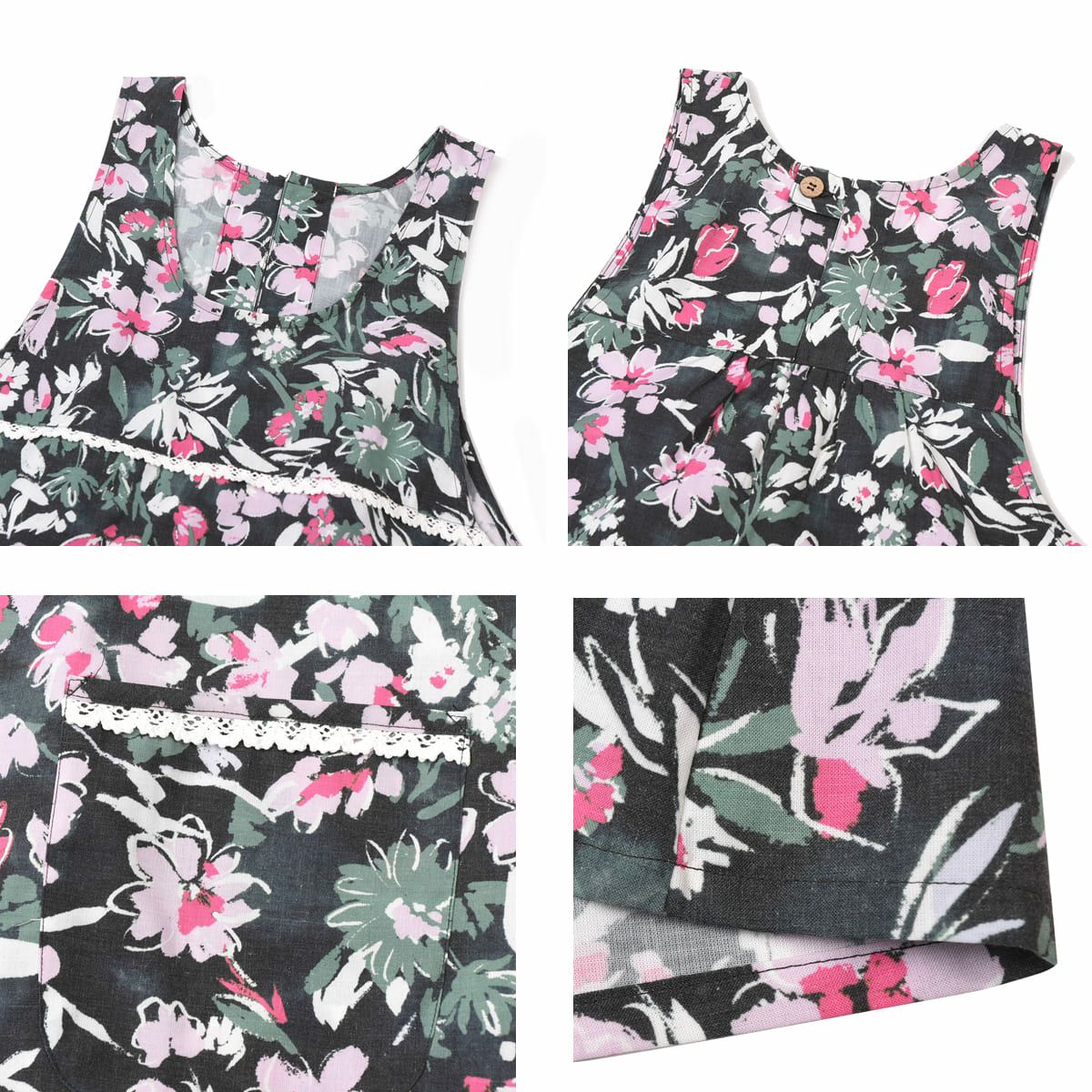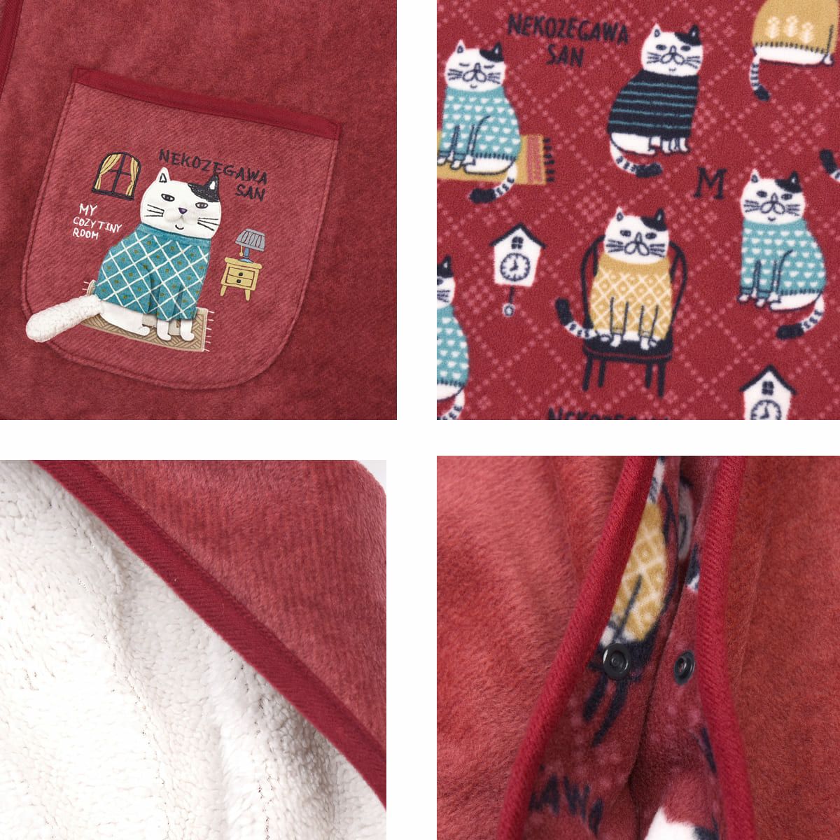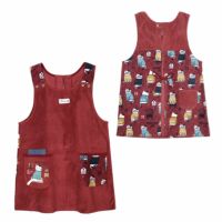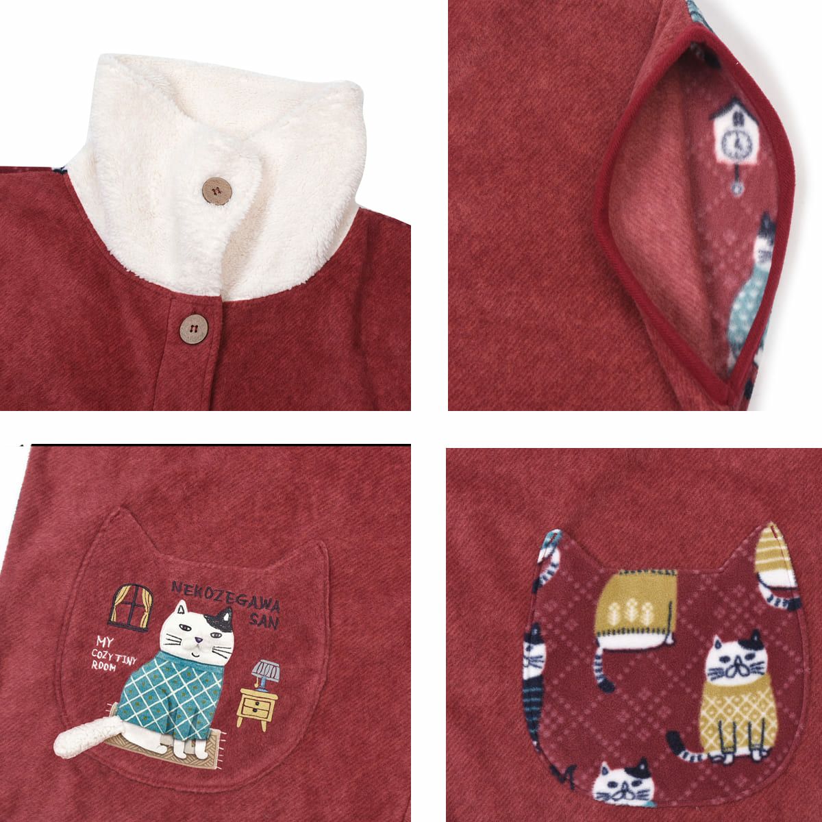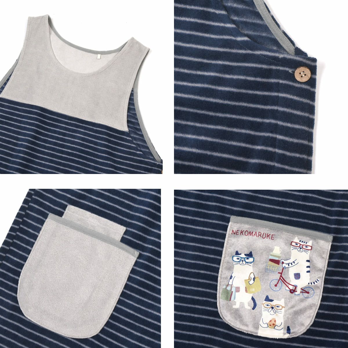 エプロン レディース フリーサイズ おしゃれ フリース 保育士 ねこぜがわさん 脇釦あき エプロン 24-7614 クスグルジャパン エプロン あたたかい 秋冬 フリース