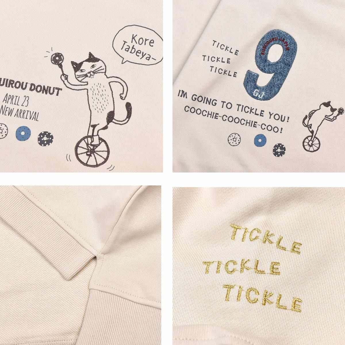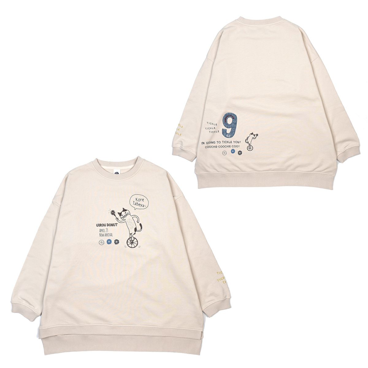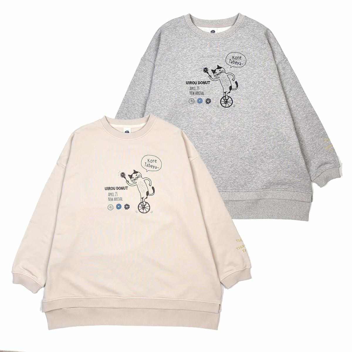 トレーナー レディース 長袖 ゆったり 大きめ ミニ裏毛トレーナー こちょこちょドーナツ柄 24-7565 クスグルジャパン トレーナー 大きめなシルエット