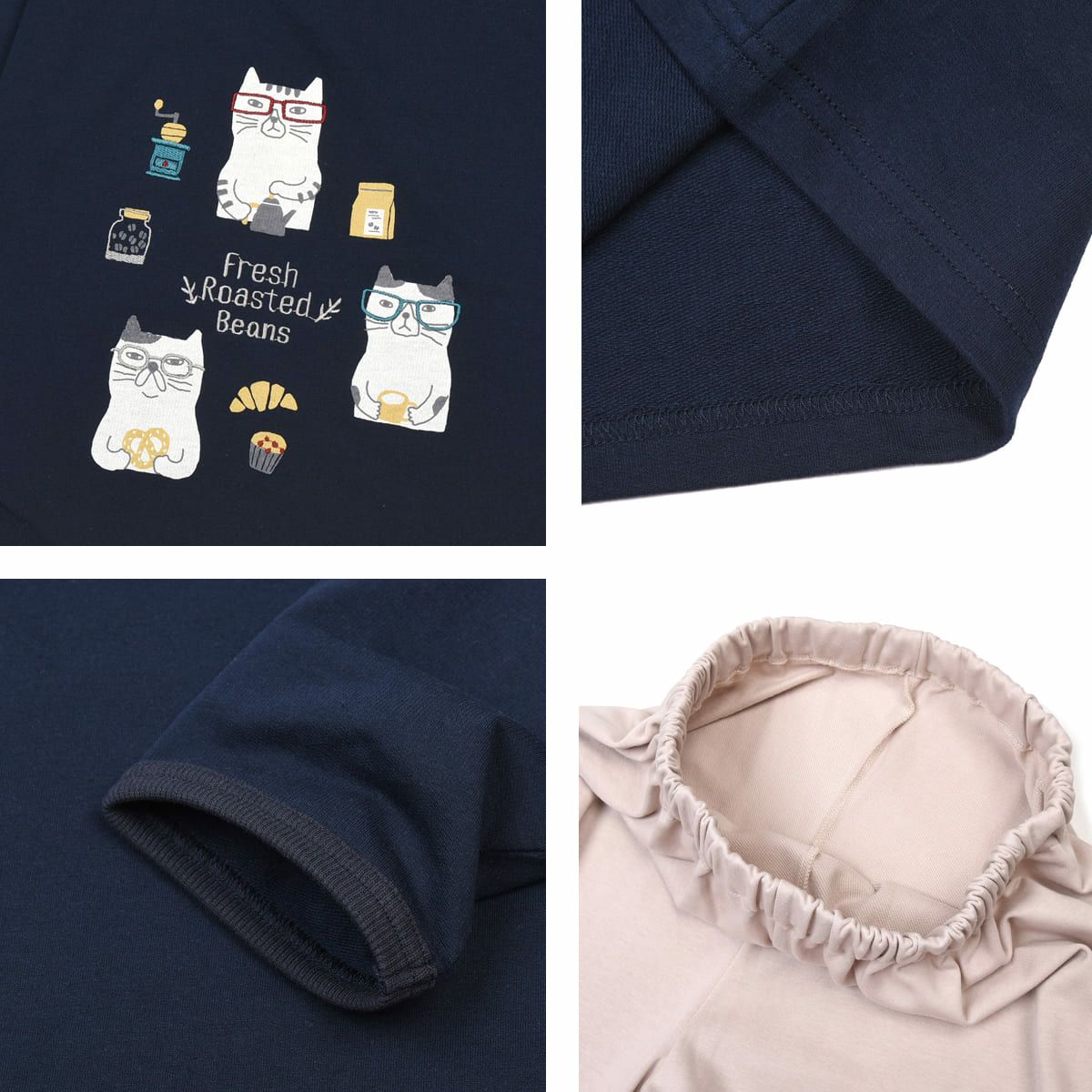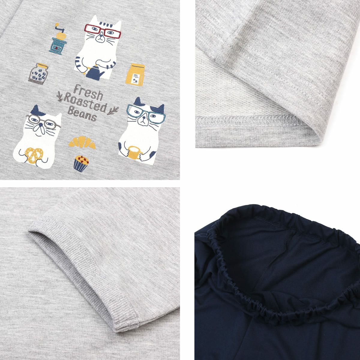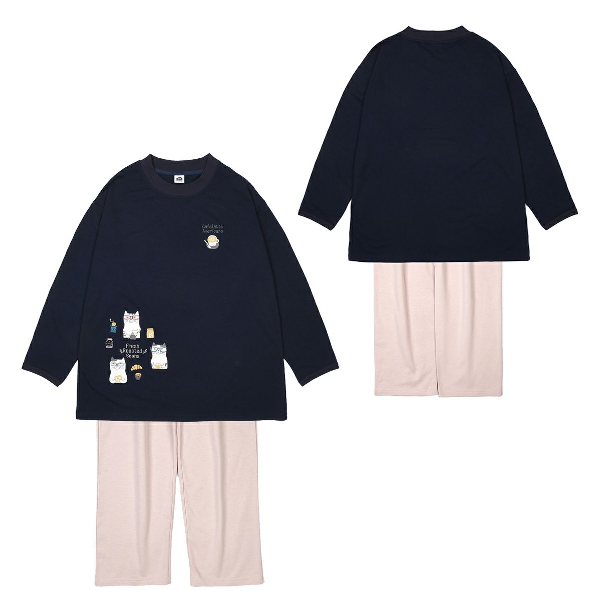 ルームウエア レディース 長袖 上下セット プルオーバールームウエア ネコまるけ柄 24-7568 クスグルジャパン ミニミニ裏毛ニット 上下セット