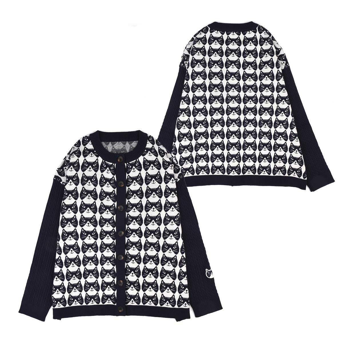 セーター レディース 長袖 ゆったり オーバーサイズ ジャガード カーディガン 24-7613 クスグルジャパン ゆったり ガーディガン ミチョロ柄