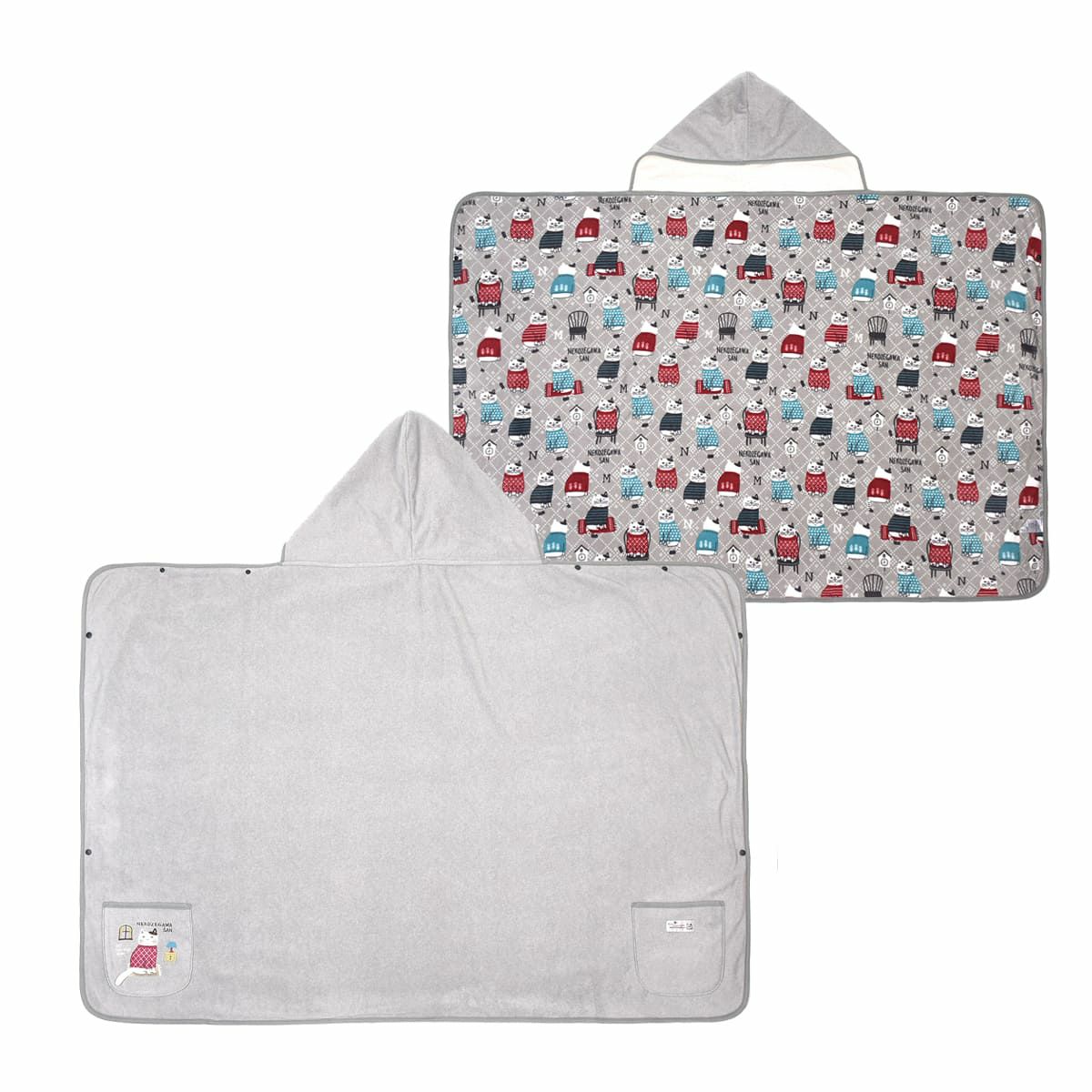 ひざ掛け フリース あたたかい かわいい ネコキャラ ねこぜがわさん フリース フード付きひざ掛け 24-7628 クスグルジャパン フリース ひざ掛け ボア