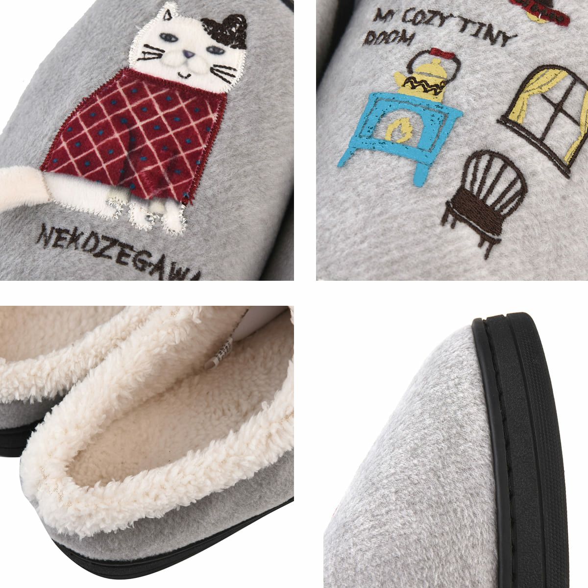 スリッパ フリース あたたかい ボア かわいい ネコキャラ ねこぜがわさん フリース ルームシューズ 24-7629 クスグルジャパン スリッパ 部屋履き ボア