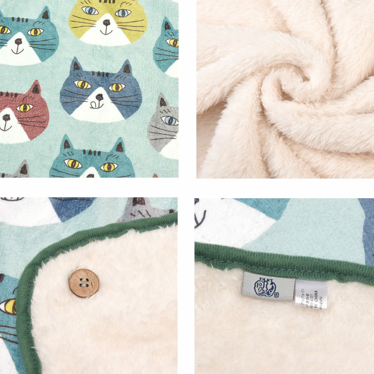 ひざ掛け ボア ふわふわ あたたかい モケモケット サンゴマイヤー ひざ掛け ネコまるけ柄 24-7650 クスグルジャパン フリース ひざ掛け ボア