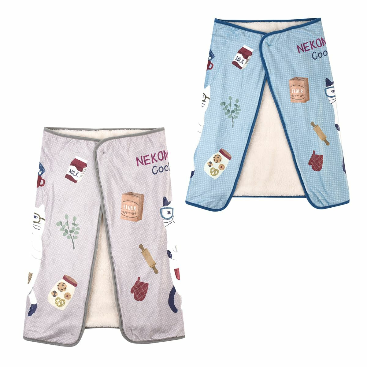 エプロン レディース フリーサイズ おしゃれ ネコキャラ フリース 脇釦あき エプロン 24-7632 クスグルジャパン エプロン あたたかい 秋冬 フリース