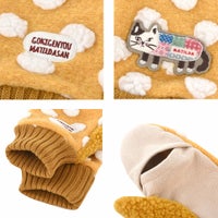 特 徴 :指先の部分が開いて指が出せる2way仕様になっているので、携帯などの操作が便利です。手首部分はリブ編みで冷たい空気をシャットアウト。親指は配色ボア使いのデザイン。寒くなるのが待ち遠しくなる手袋です。マチルダさんのワッペンも一緒にあたためてくれます。