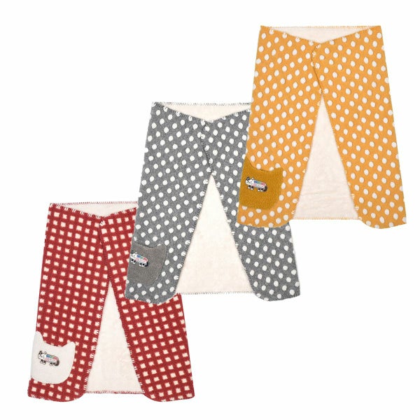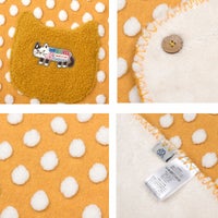特 徴 :内側は柔らかなボア仕様。周りはブランケット刺繍で飾りました。ボアの猫顔ポケットには小さなマチルダさんのワッペン付きです。裏側のボタンに付け方次第で、ボレロ風に、ひざかけ、ポンチョ風に、シーンに合わせていろいろな使い方ができます。