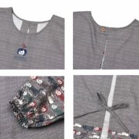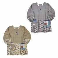 特 徴 :スッキリ見える位置で切り替えた定番のカッポウ。片側のポケットにはレトロな色合いのパッチワークはフェイクプリント仕上げ。