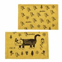 真ん中に大きなマチルダさん。周りにはおうちやいろんな木の柄。後ろはたくさんのピッコリーナさん。