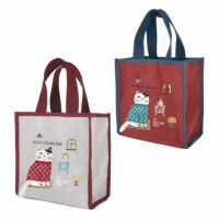 特 徴 :前側のねこぜがわさんの刺繍と、配色のパイピングがポイントのバッグ。キュービック型は中の荷物が整理しやすく自立するので便利です。