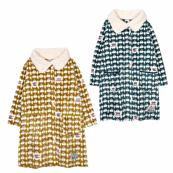 50%OFF ルームウエア レディース フリーサイズ おしゃれ ふわふわ あたたかい モケモケット 前あきワンピース ミチョロ柄 24-7643 クスグルジャパン