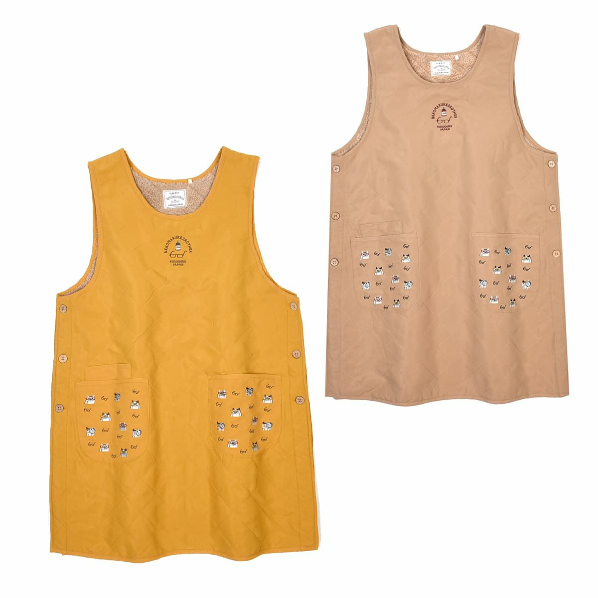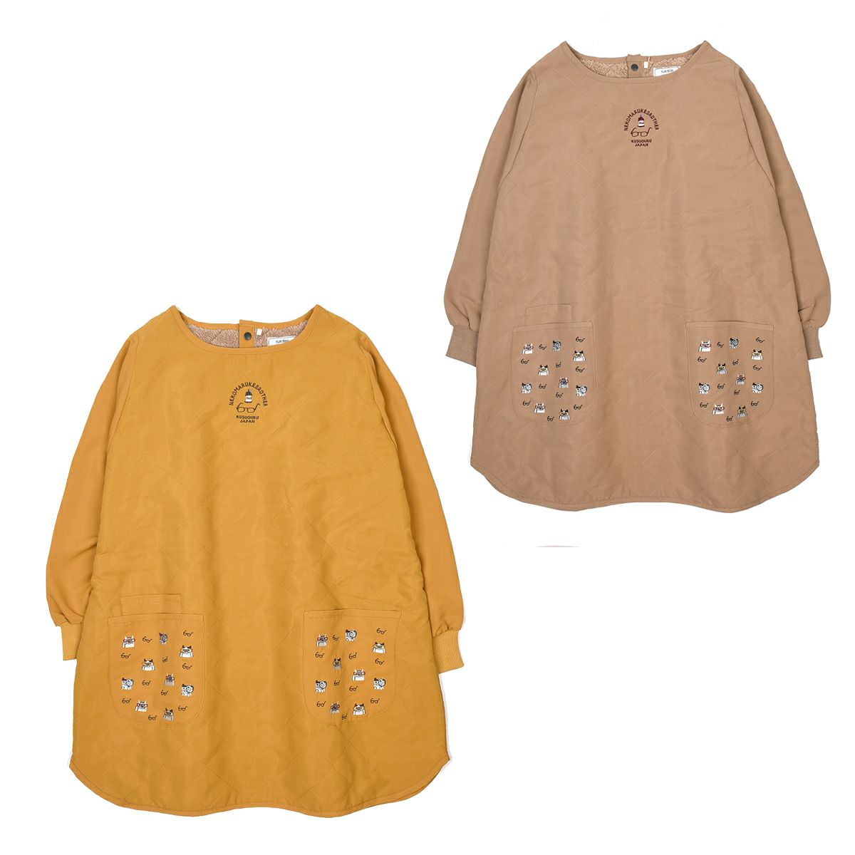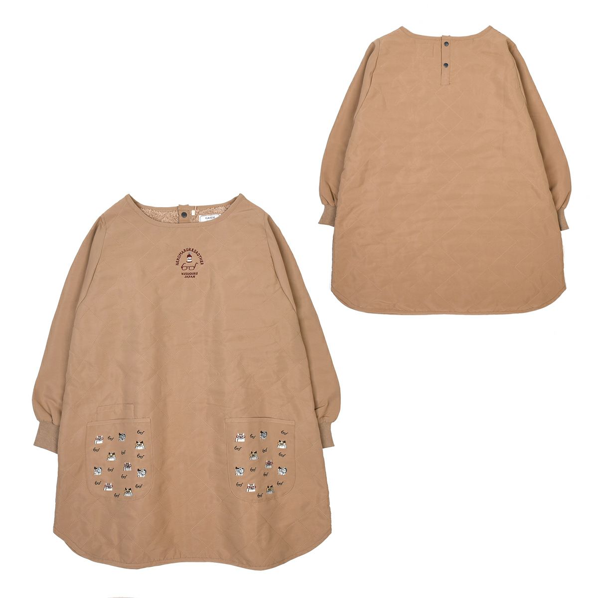 割烹着 おしゃれ 中綿キルト 裏ボア あたたかい ネコまるけ 釦あきキルトプルオーバーカッポウ 24-7670 クスグルジャパン 割烹着 レディース
