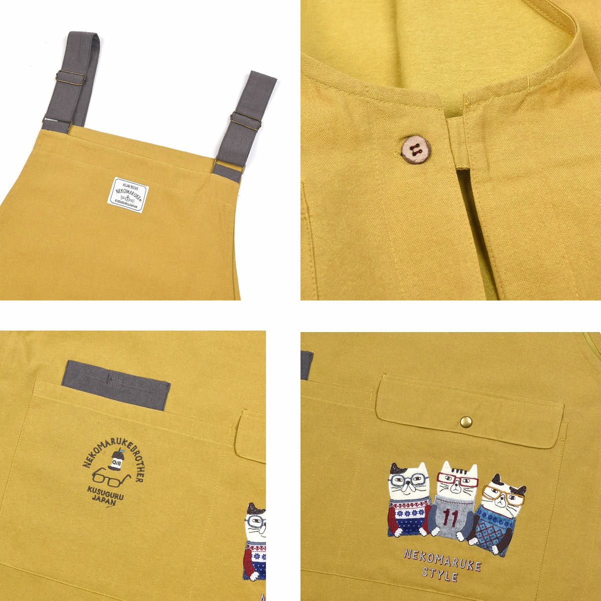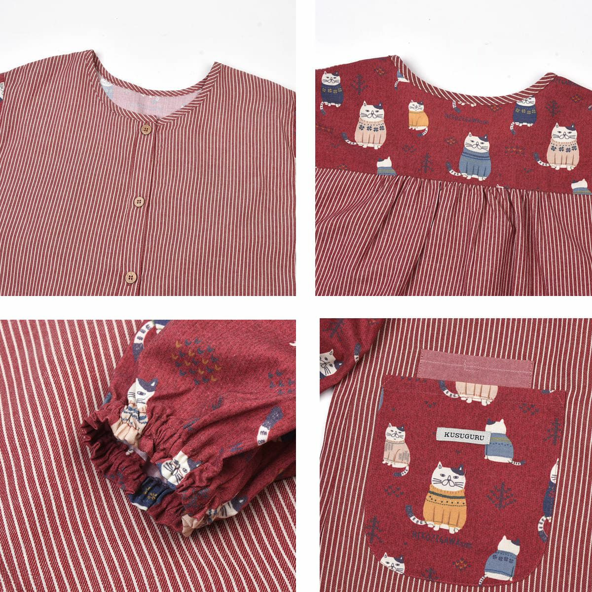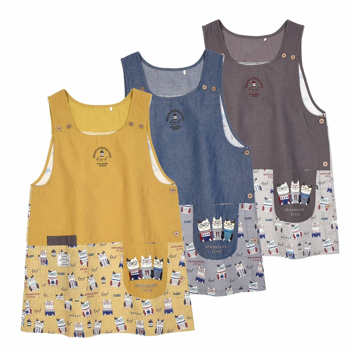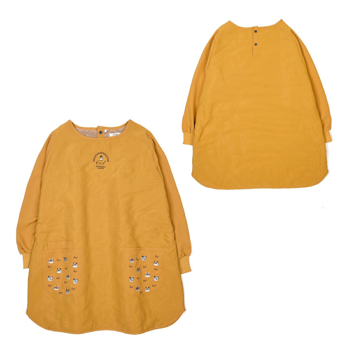 割烹着 おしゃれ 中綿キルト 裏ボア あたたかい ネコまるけ 釦あきキルトプルオーバーカッポウ 24-7670 クスグルジャパン 割烹着 レディース