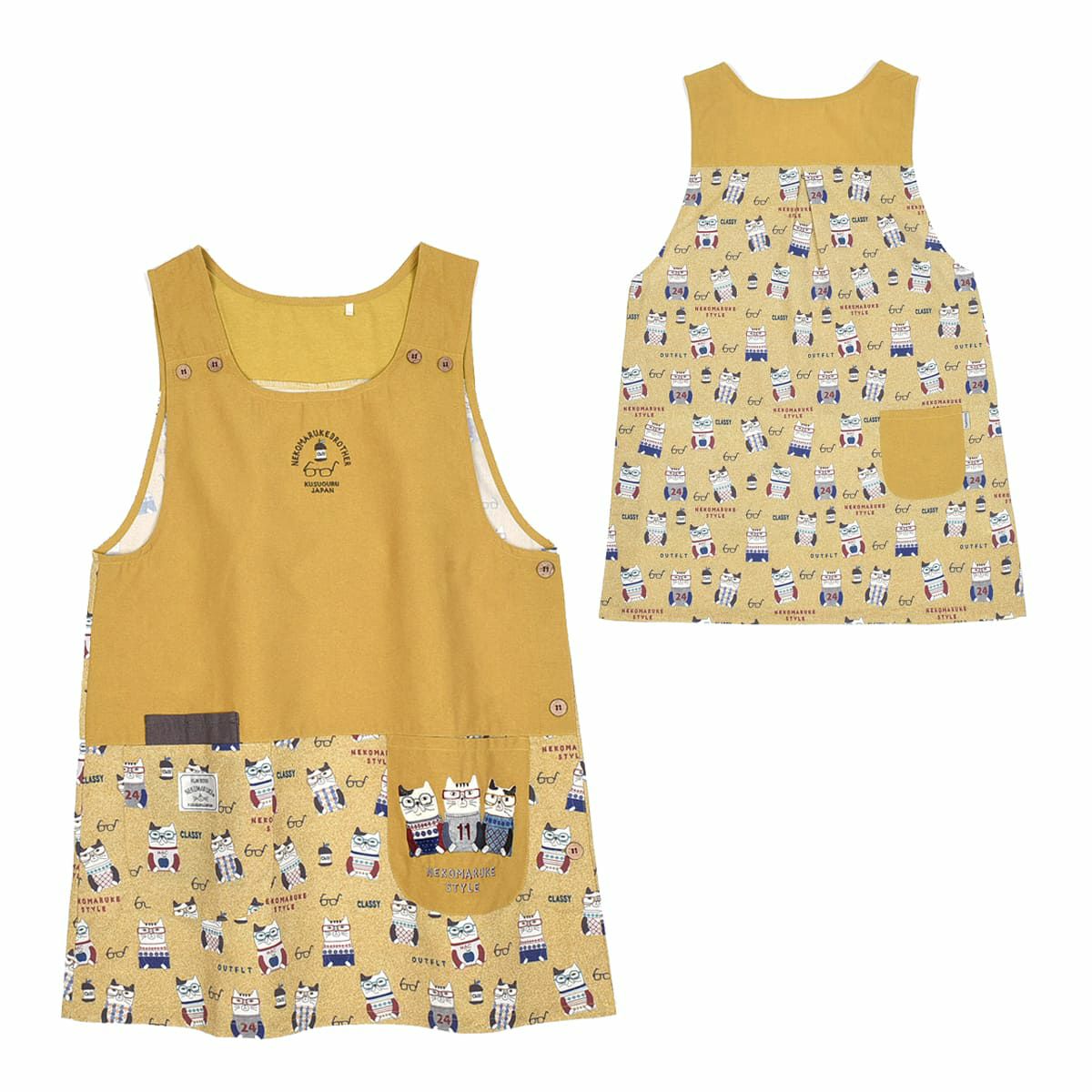 エプロン レディース フリーサイズ おしゃれ ふわふわ あたたかい 保育士 モケモケット 脇釦あき エプロン ネコまるけ柄 24-7635 クスグルジャパン