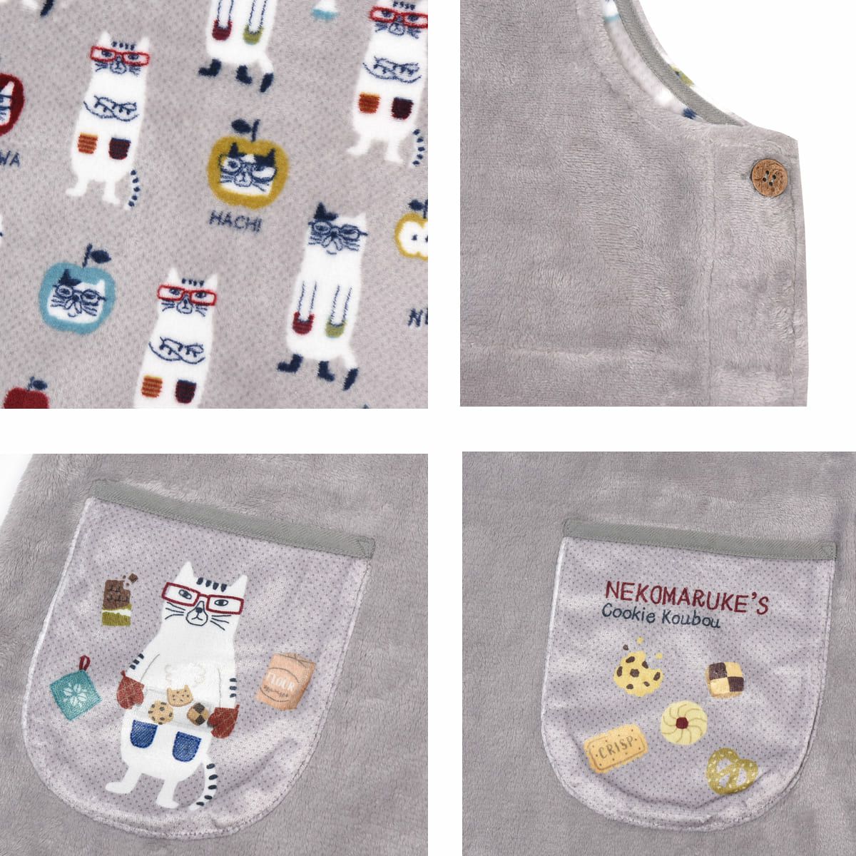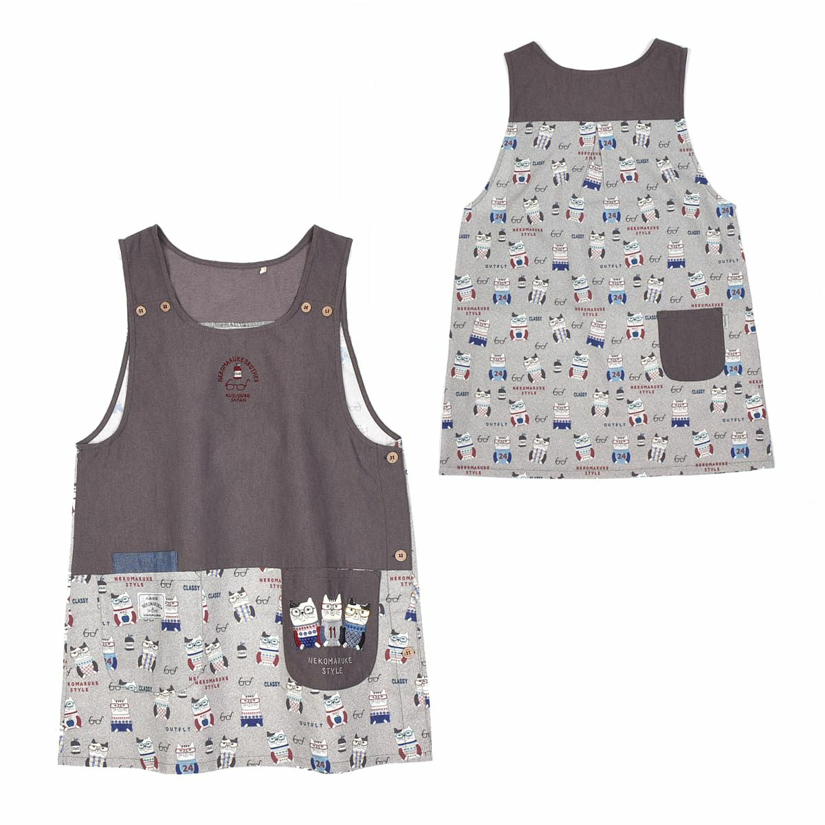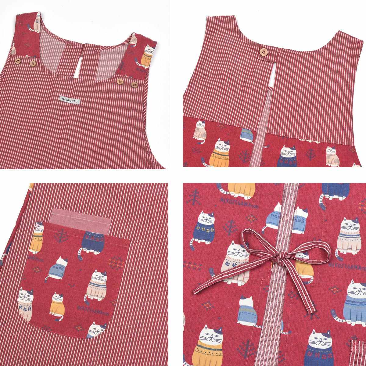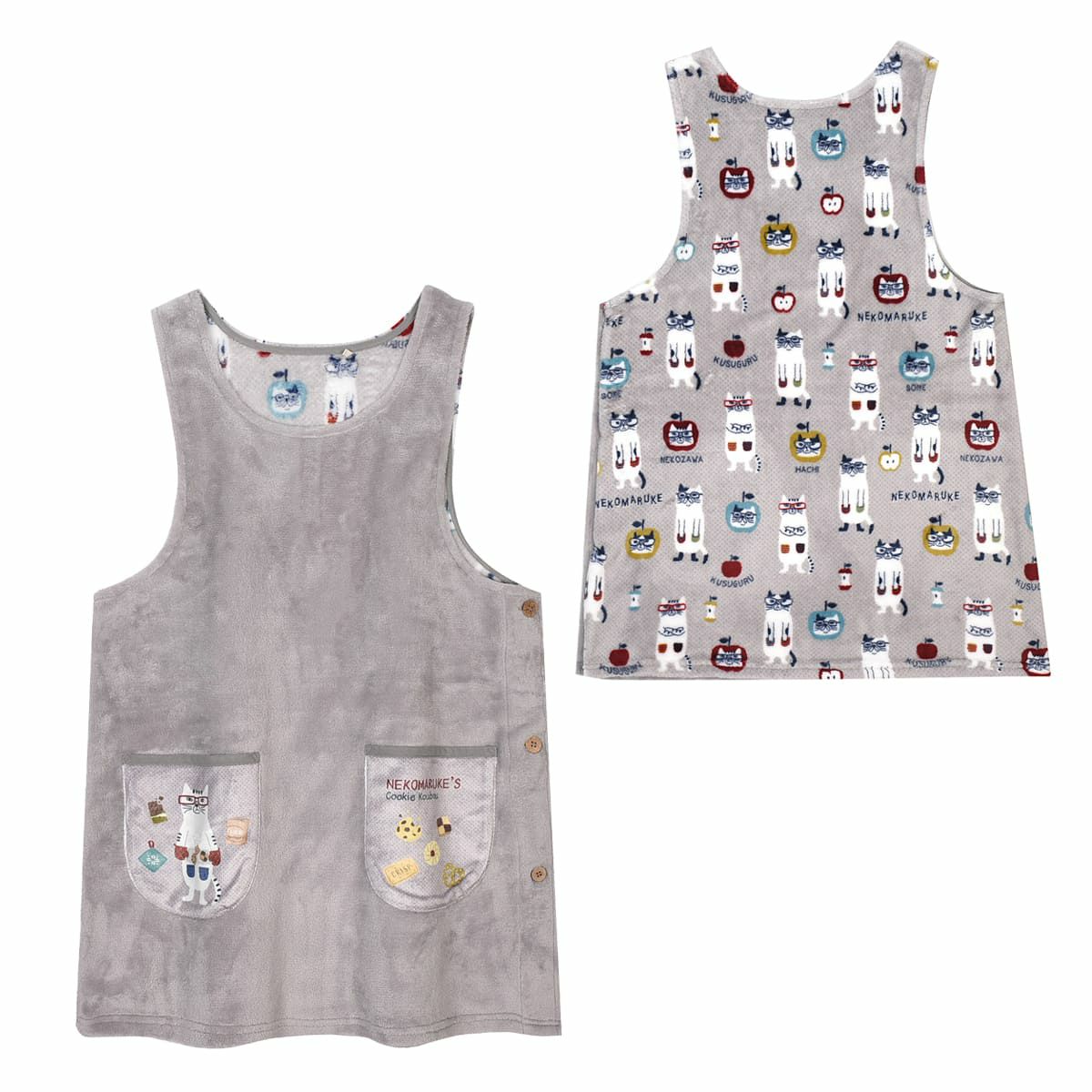 割烹着 レディース フリーサイズ おしゃれ ふわふわ あたたかい モケモケット リブカッポウ ネコまるけ柄 24-7638 クスグルジャパン