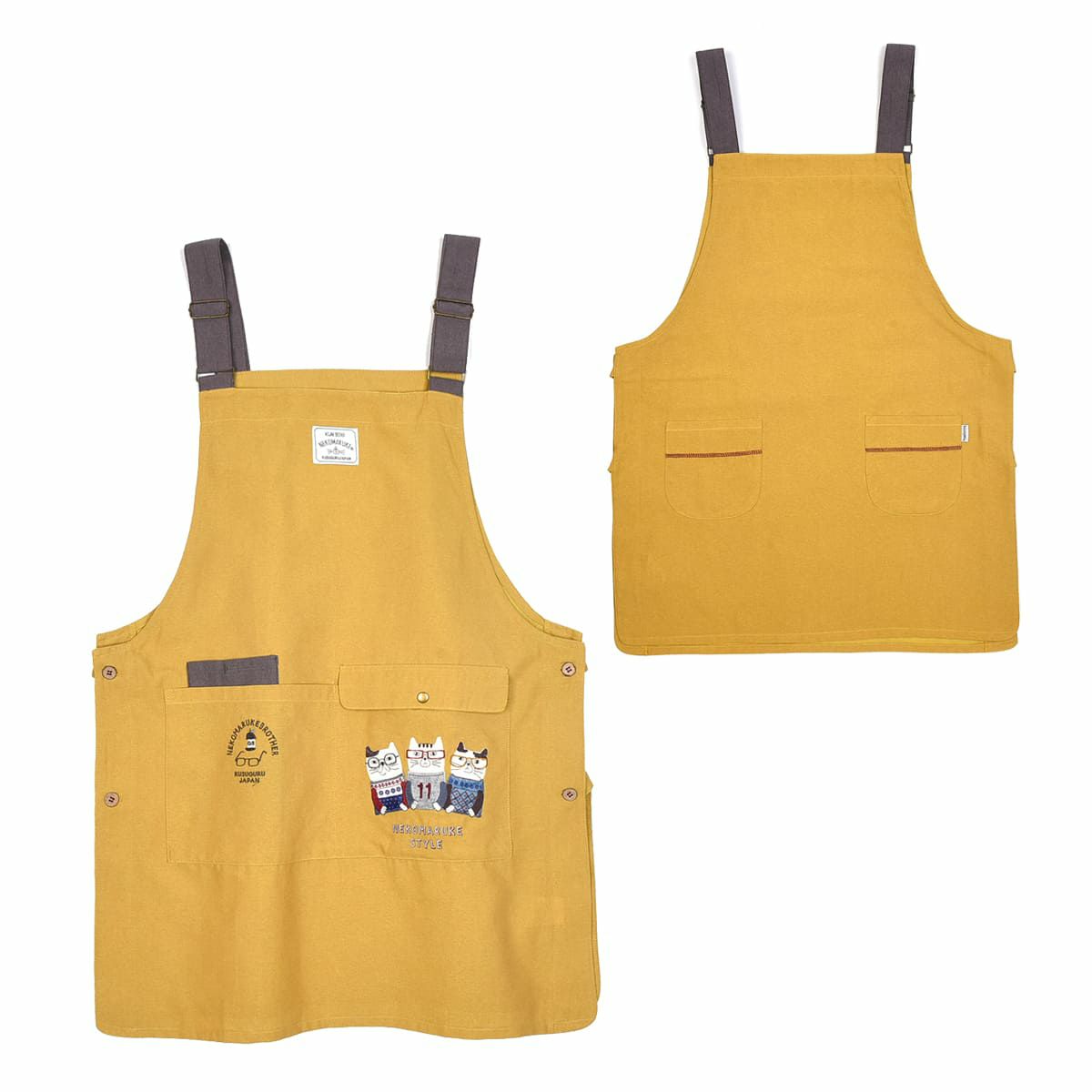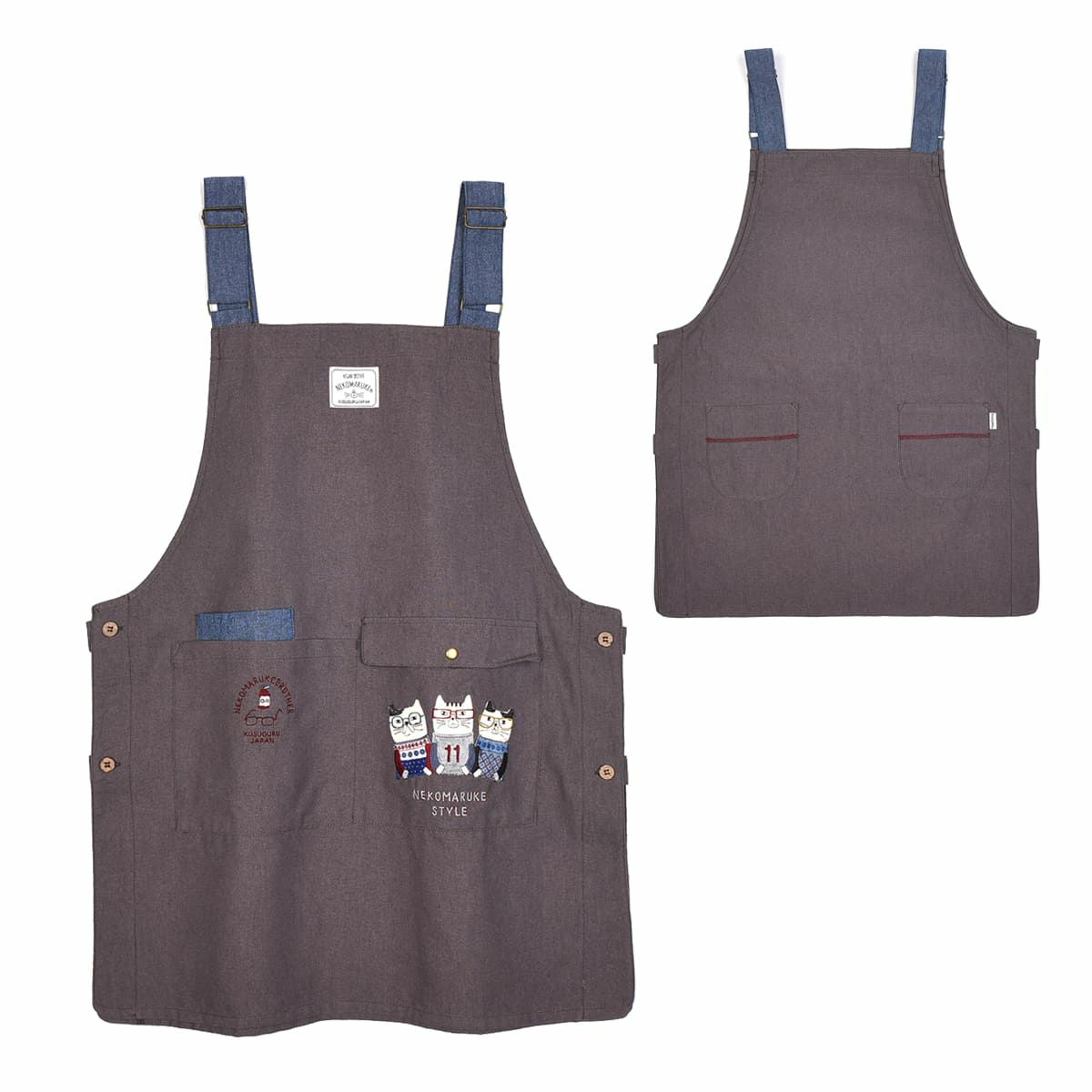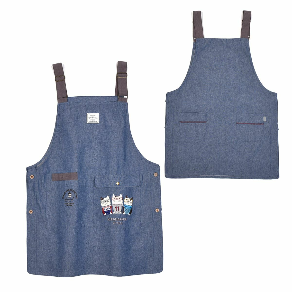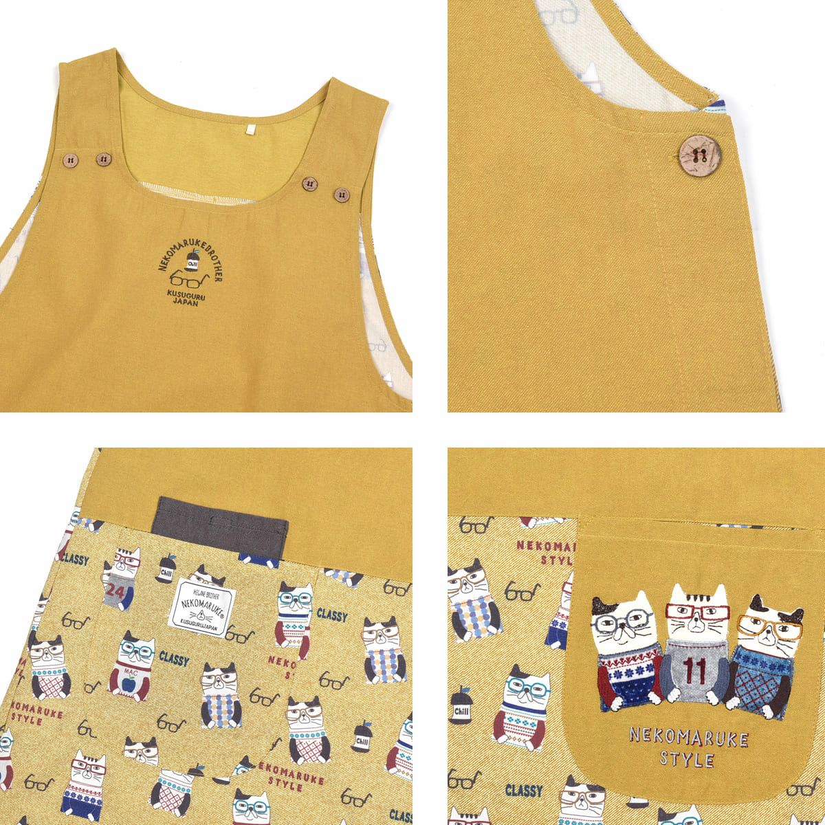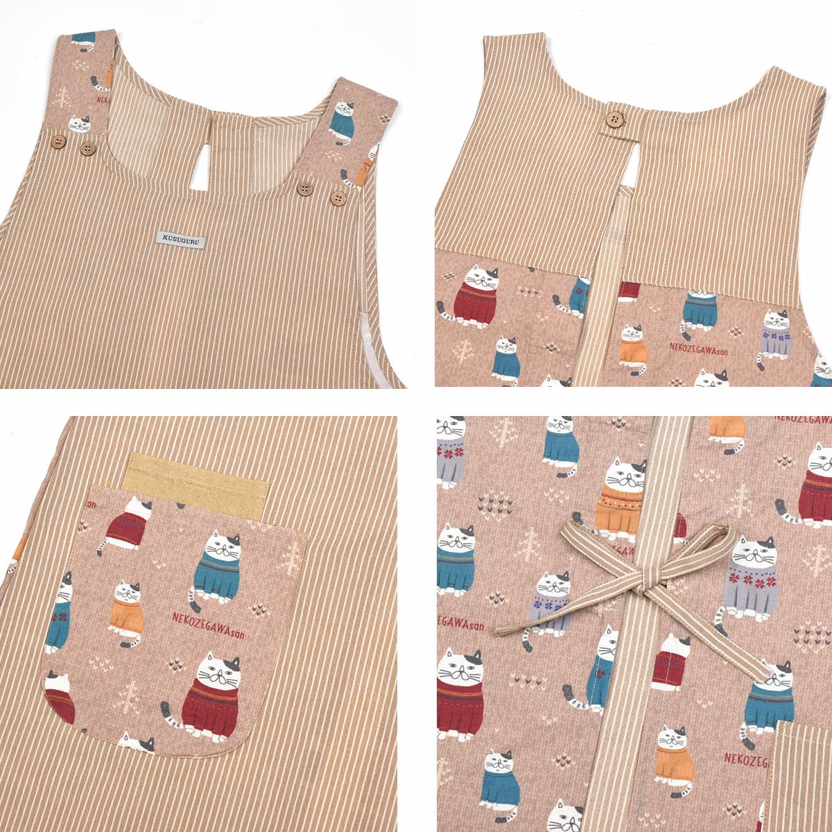 割烹着 レディース フリーサイズ おしゃれ ふわふわ あたたかい モケモケット リブカッポウ ネコまるけ柄 24-7638 クスグルジャパン