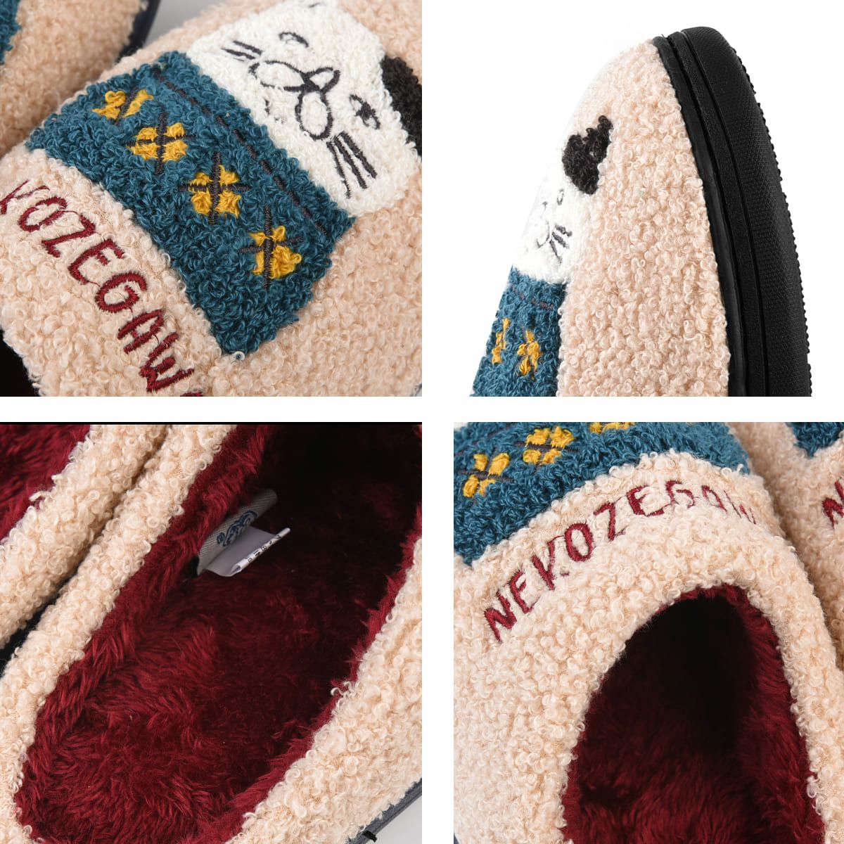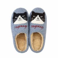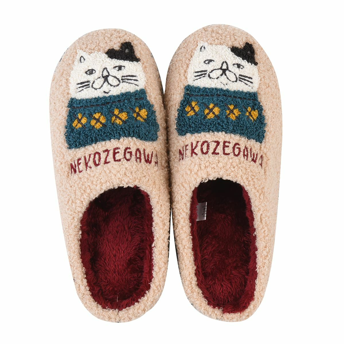 スリッパ ボア あたたかい モコモコ 毛足素材 かわいい 相良刺繍 ルームシューズ ねこぜがわさん柄 24-7592 クスグルジャパン スリッパ 部屋履き ボア