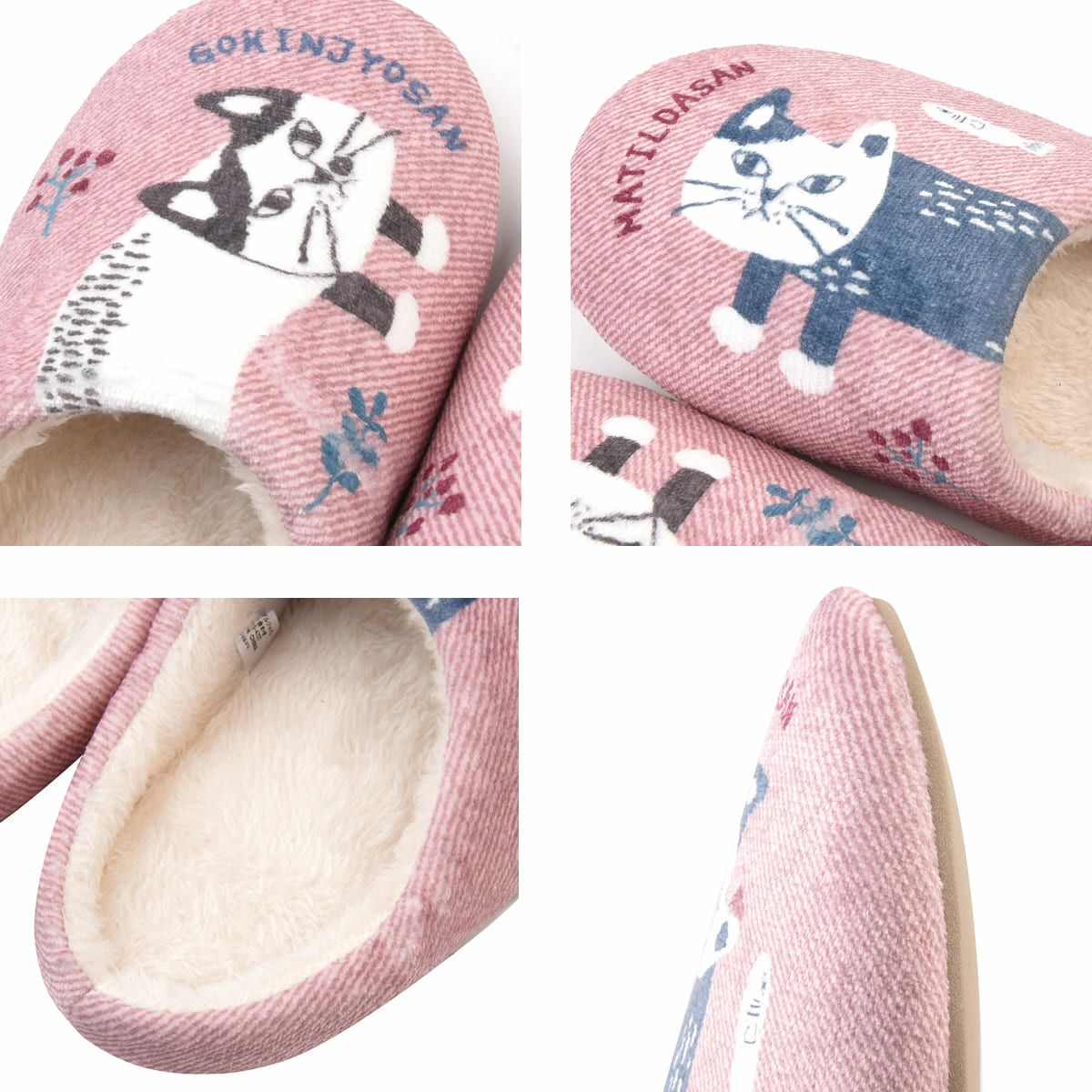 スリッパ ボア レディース ふわふわ あたたかい モケモケット サンゴマイヤールームシューズ ネコまるけ柄 24-7645 クスグルジャパン スリッパ 部屋履き ボア