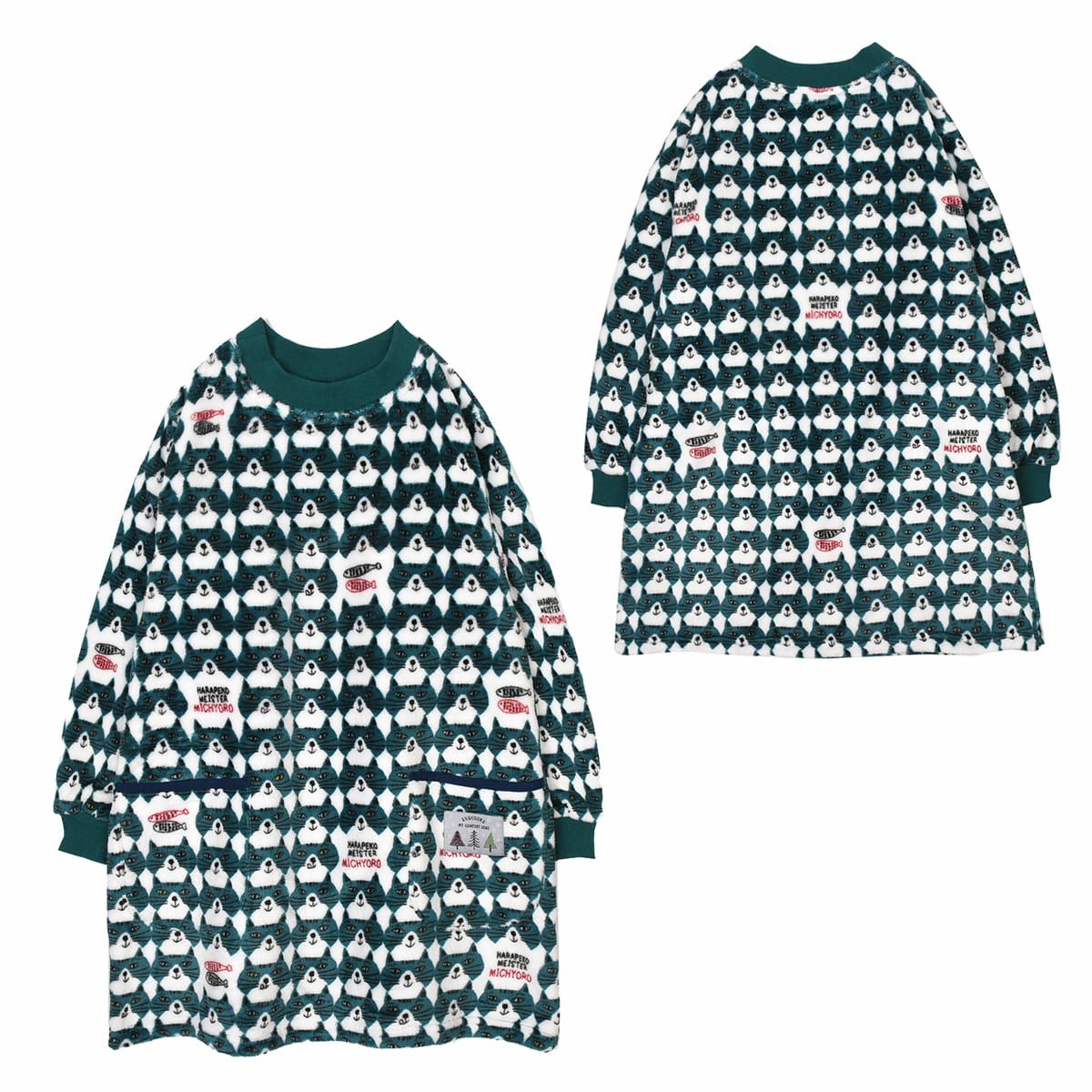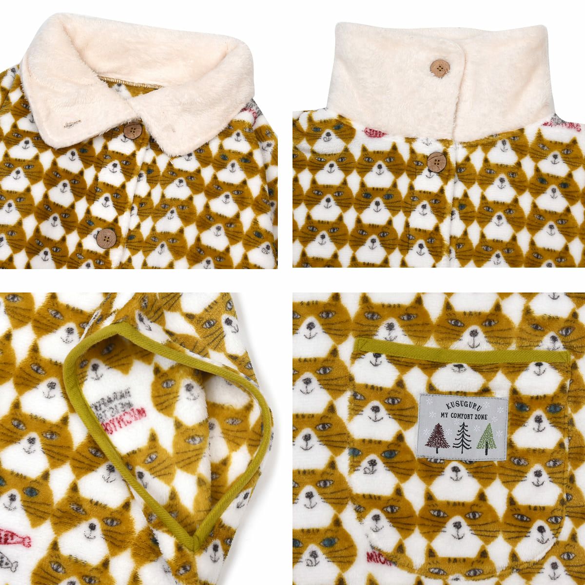 ルームウエア レディース フリーサイズ おしゃれ ふわふわ あたたかい モケモケット 前あきワンピース ミチョロ柄 24-7643 クスグルジャパン