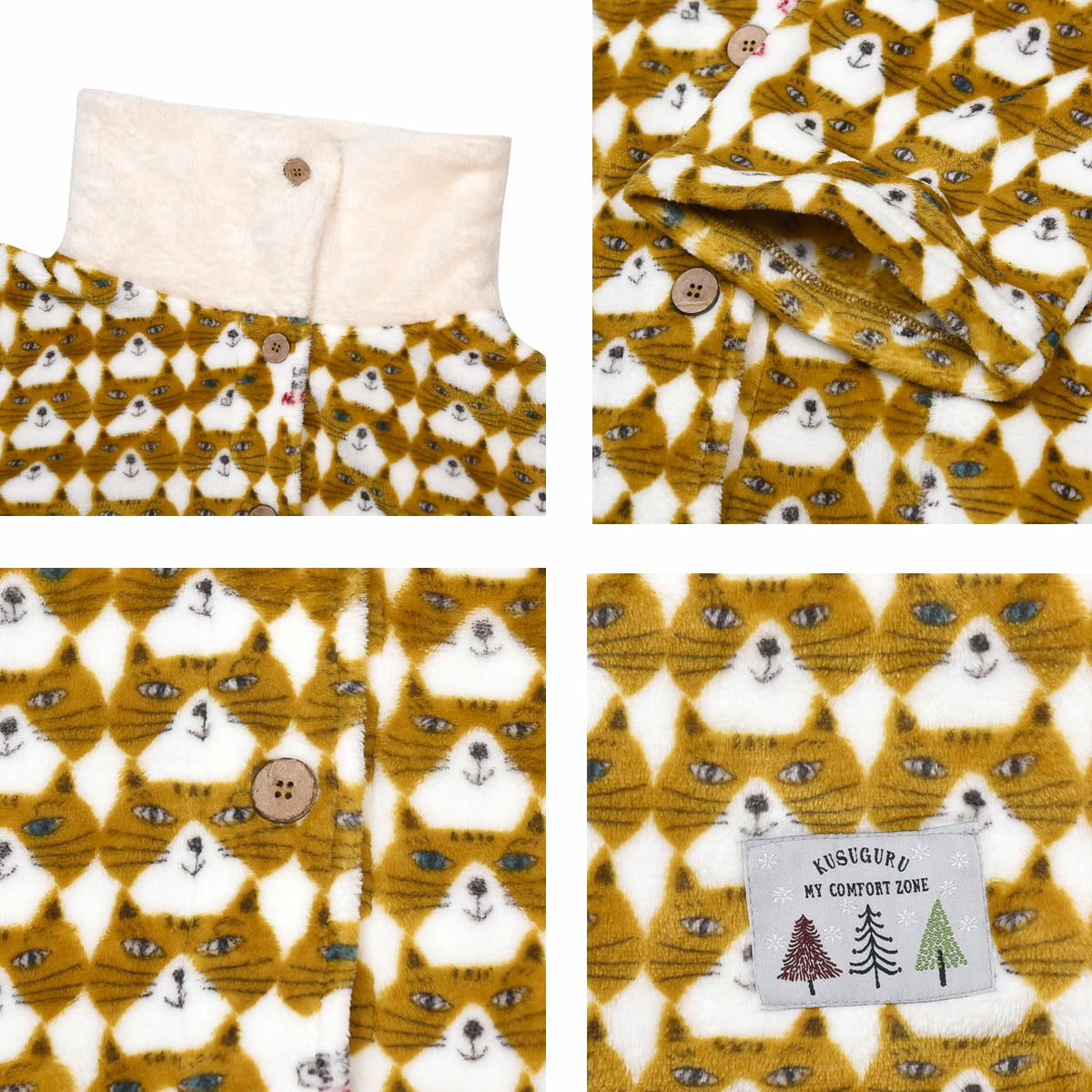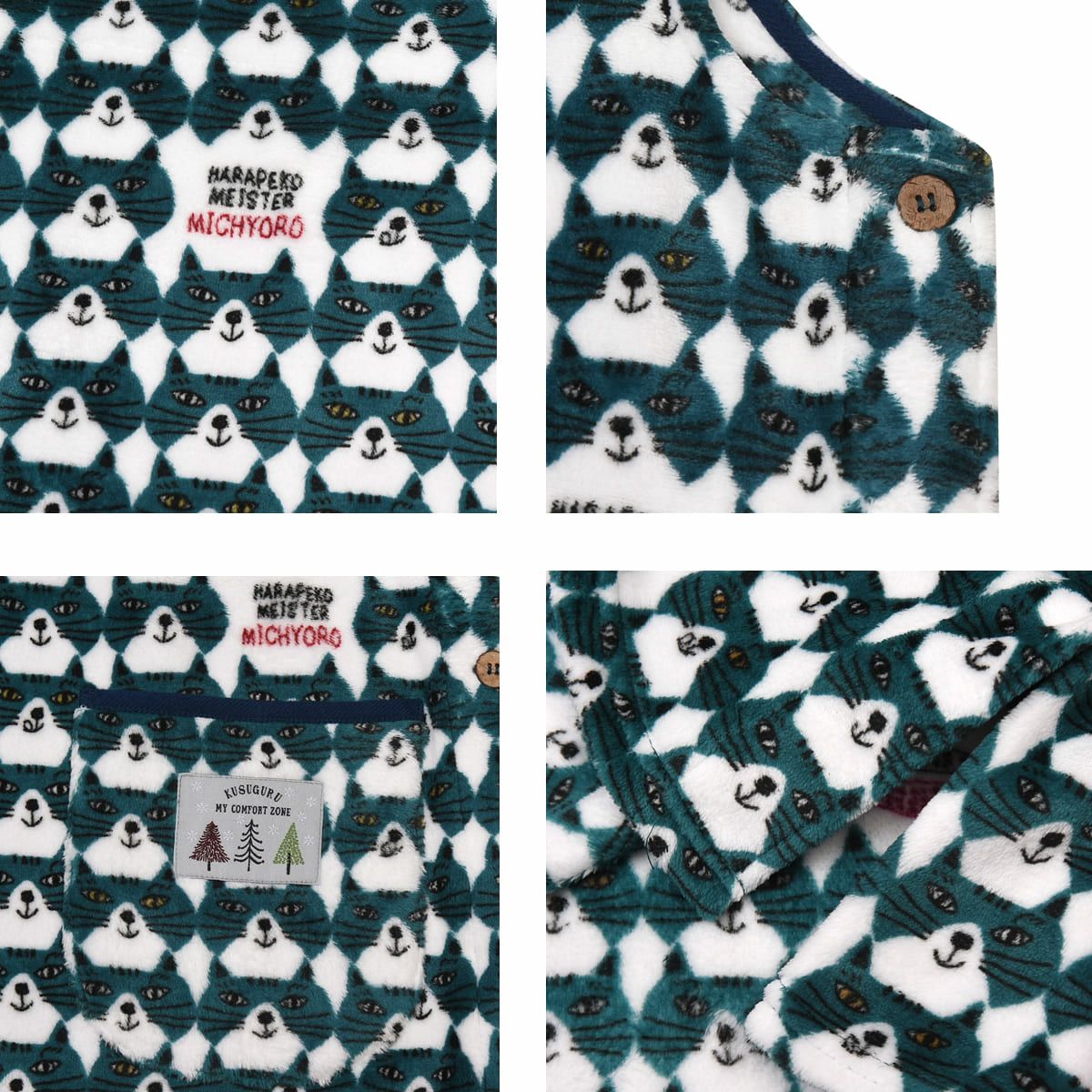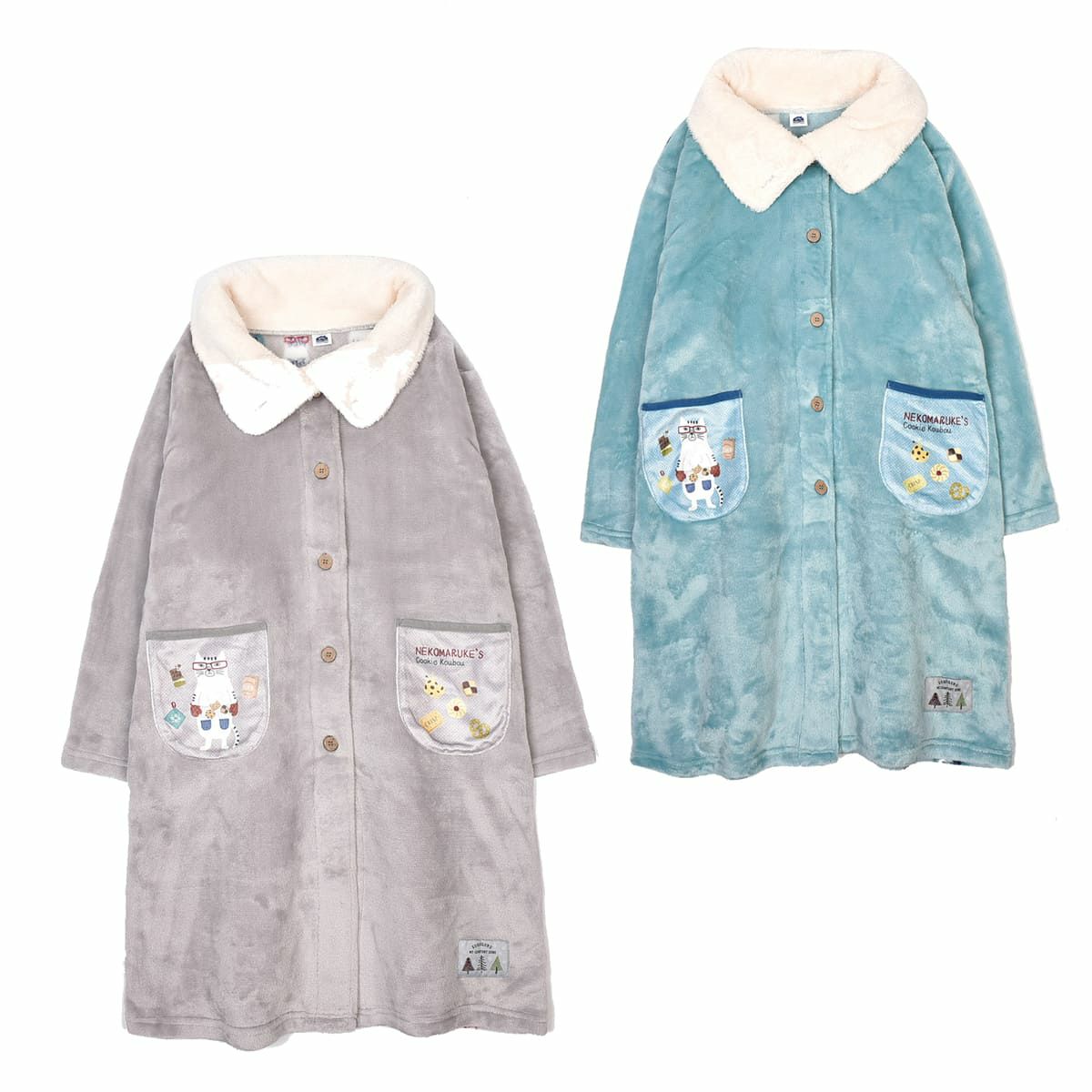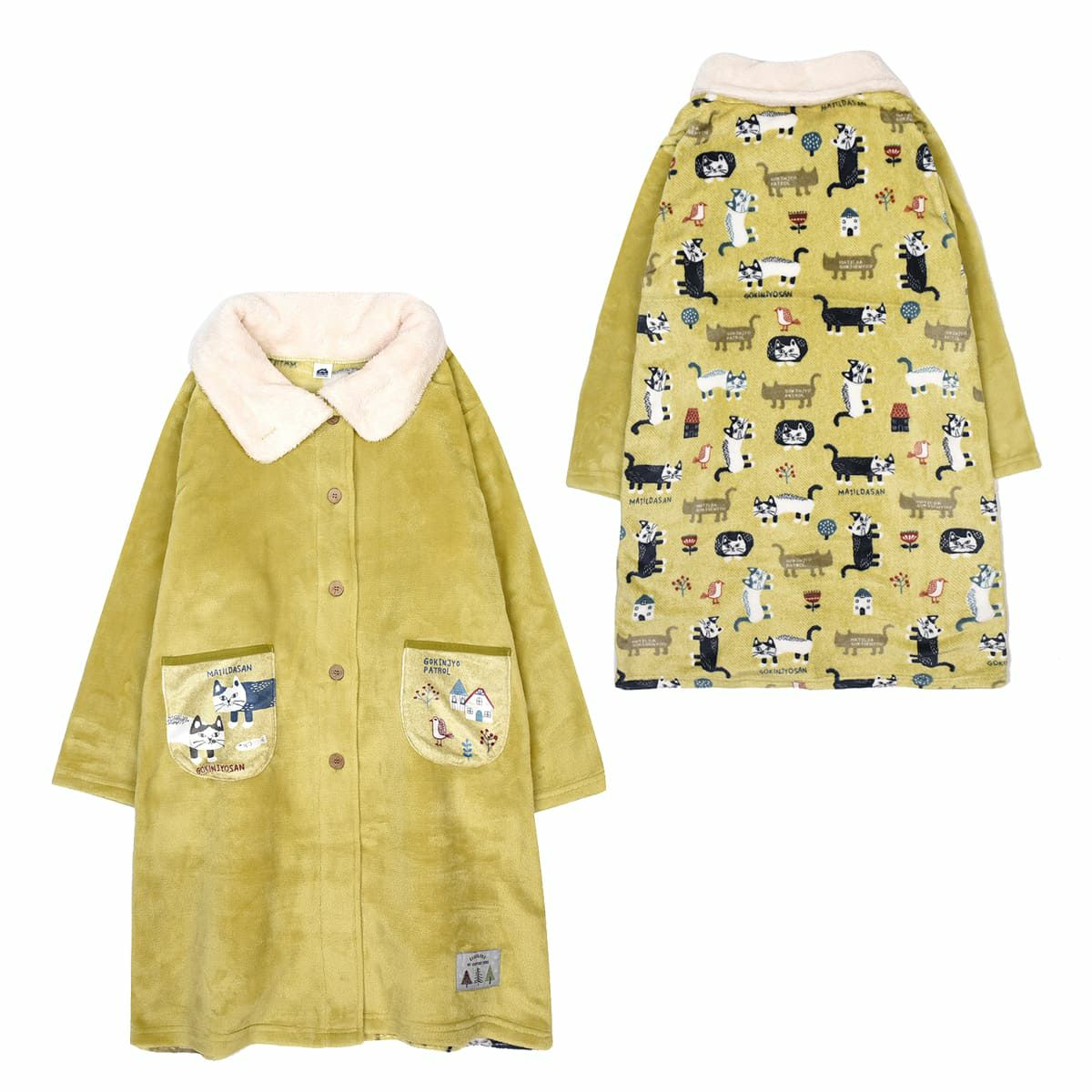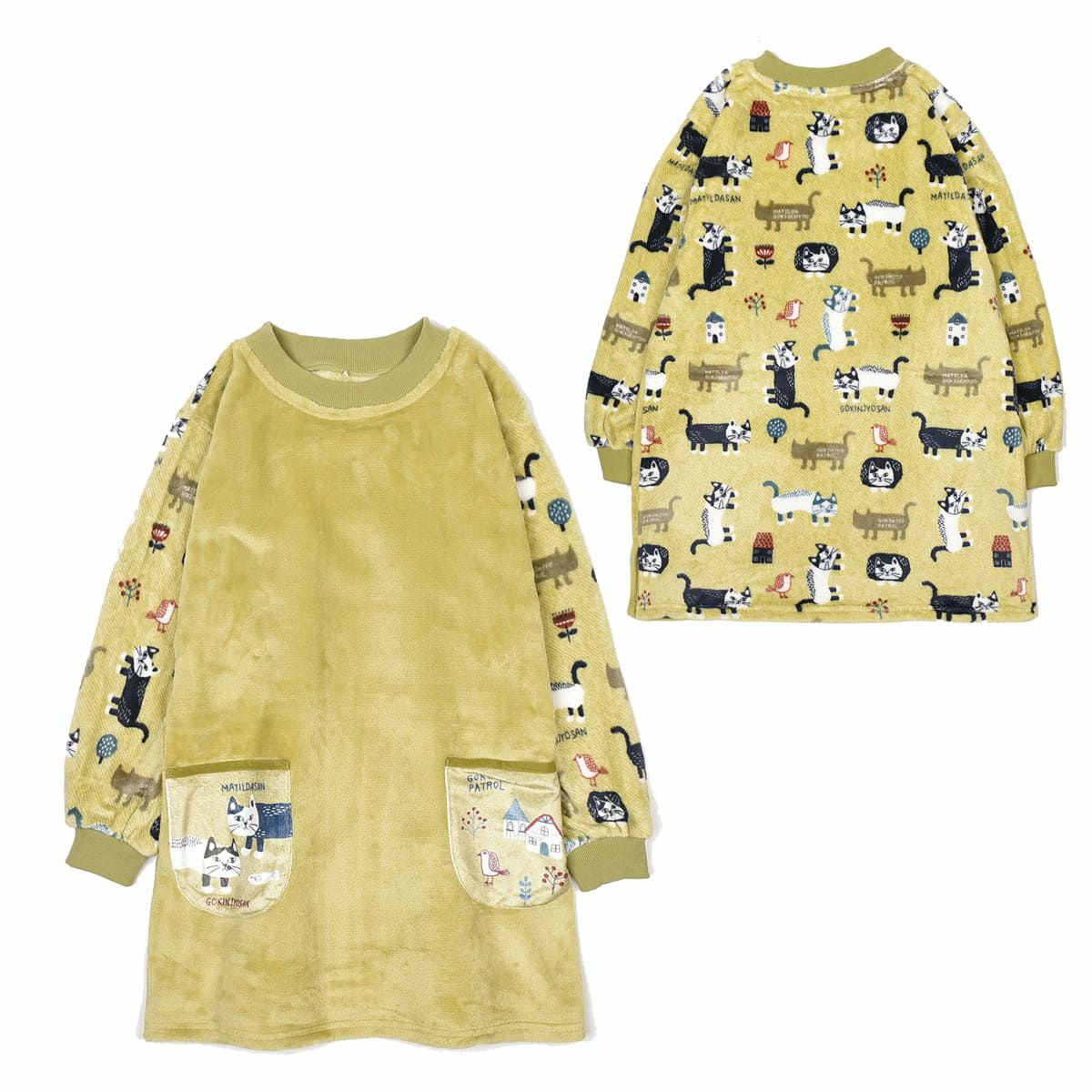 ルームウエア レディース フリーサイズ おしゃれ ふわふわ あたたかい モケモケット 前あきワンピース ネコまるけ柄 24-7641 クスグルジャパン