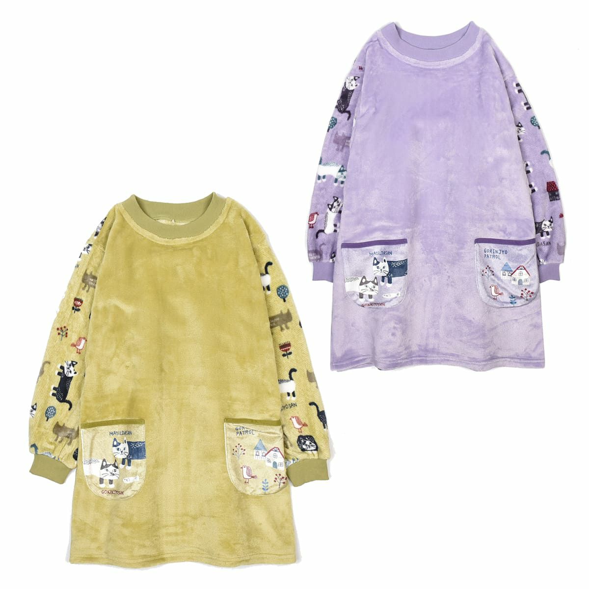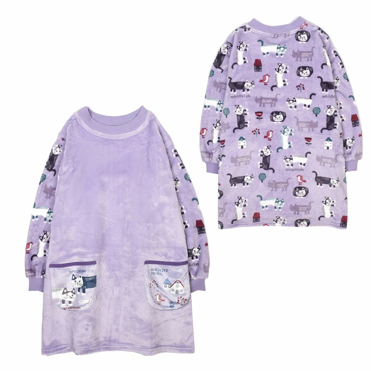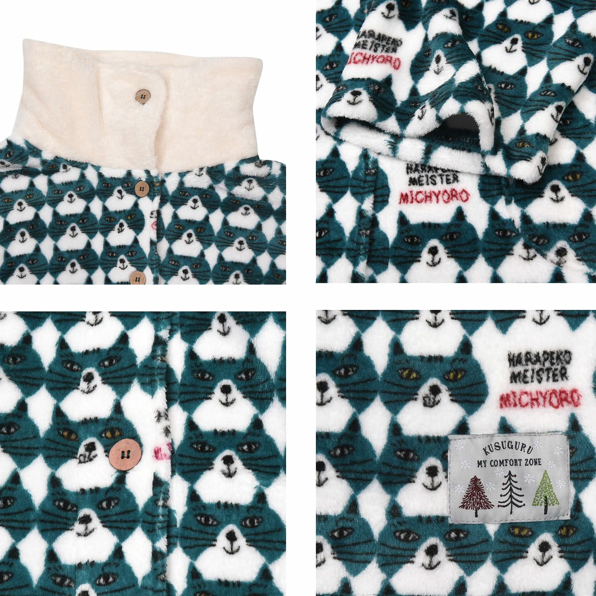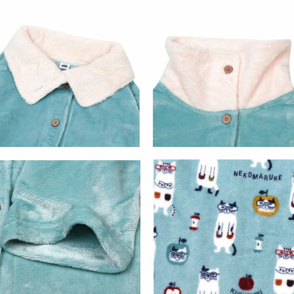 ルームウエア レディース フリーサイズ おしゃれ ふわふわ あたたかい モケモケット 前あきワンピース ネコまるけ柄 24-7641 クスグルジャパン