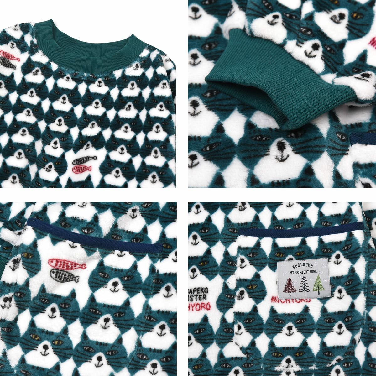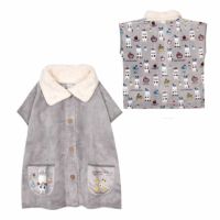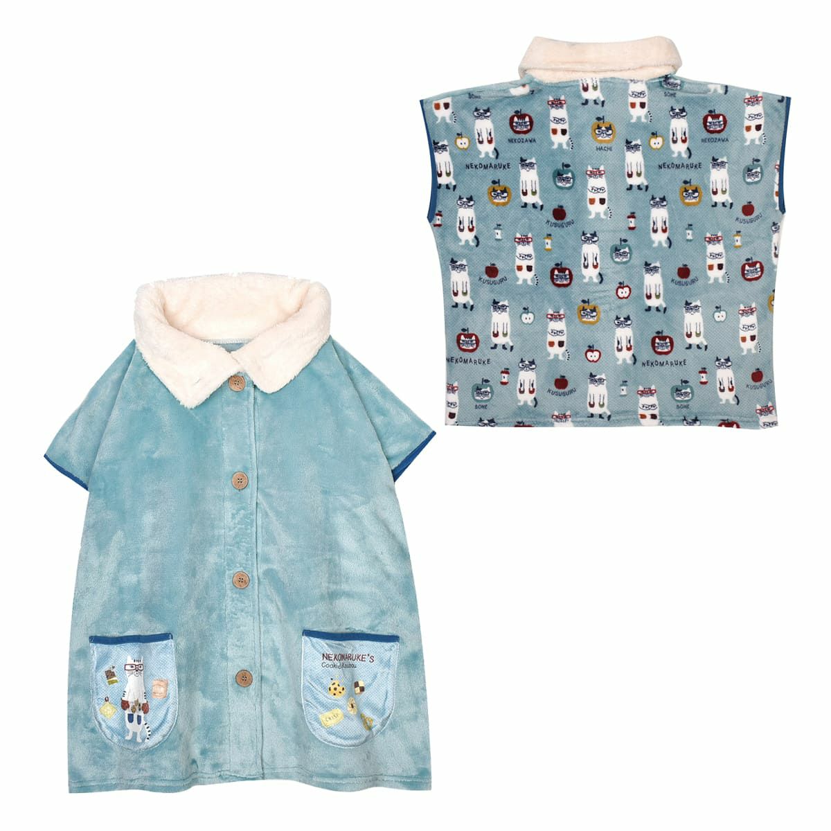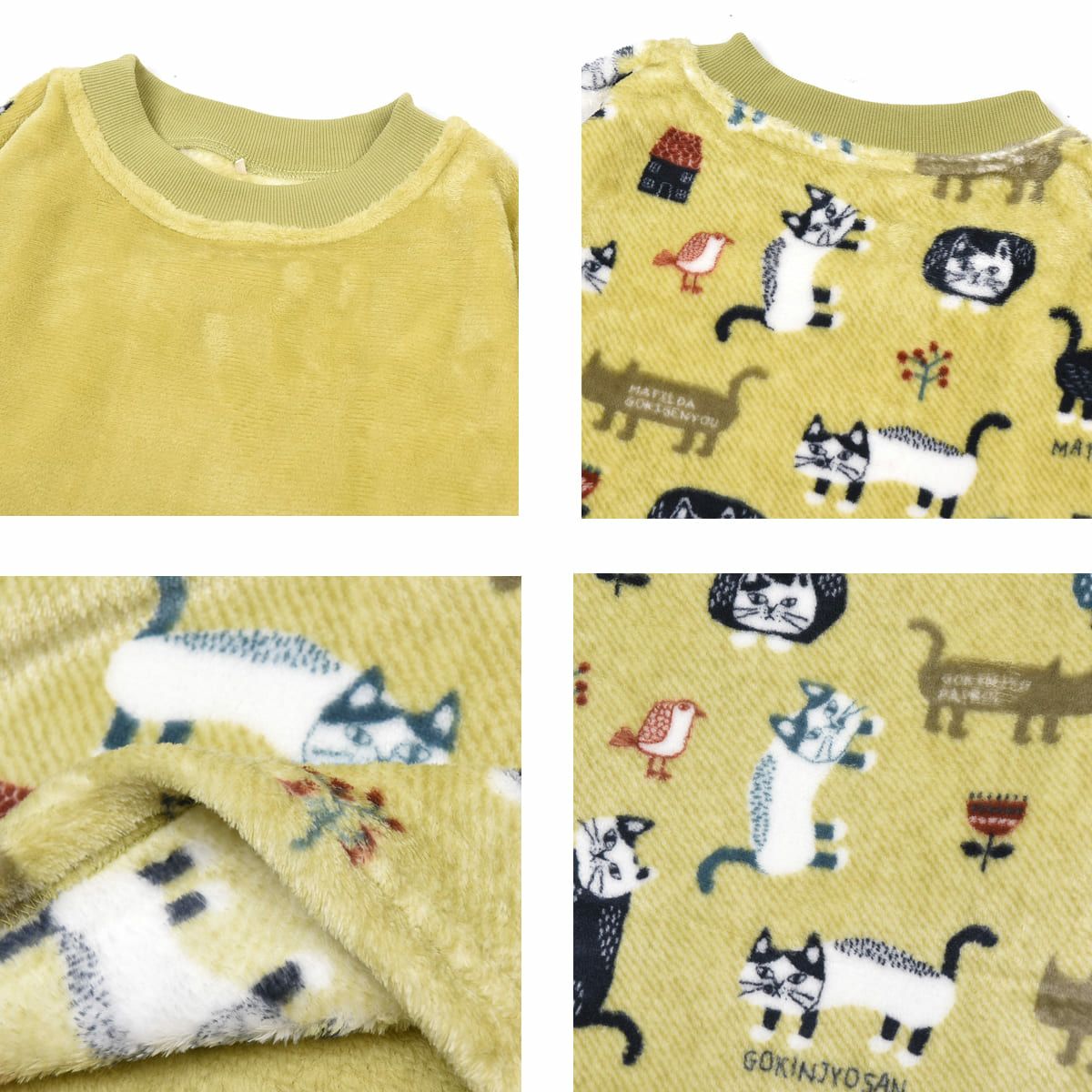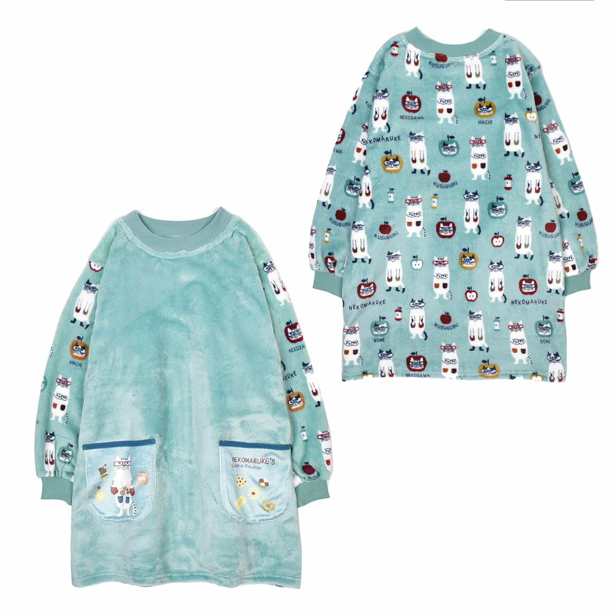 ルームウエア レディース フリーサイズ おしゃれ ふわふわ あたたかい モケモケット 前あきワンピース ネコまるけ柄 24-7641 クスグルジャパン