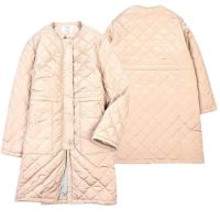 キルティングコート レディース 撥水加工 ロングコート 秋冬 長袖 アウター ウエスト調整可 24-7675 クスグルジャパン 中綿コート 軽量 ノーカラー 防寒