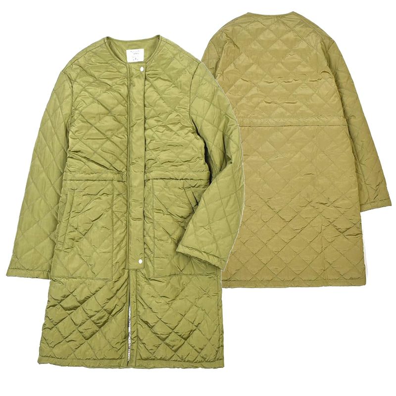 クスグルジャパン 中綿コート 軽量 ノーカラー 防寒