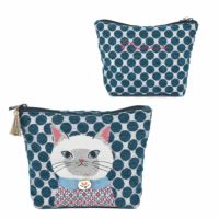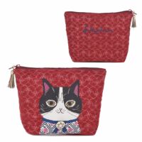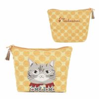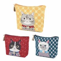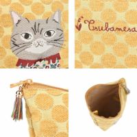 コメント:引手にはカラフルで可愛いフリンジでアクセント。猫シルエットの小さな引手にも注目。軽くてたっぷり入るポーチです。