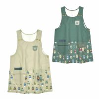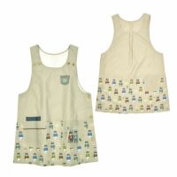 コメント:スッキリ見える位置で切り替えた定番の脇あきエプロン。胸もとの配色のポケットがアクセント。