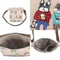 コメント:アースカラーをベースに手書き感のあるイラストをちりばめたプリントとのコラボ。パウロとシナモンのアップリケは味わいのある仕上がり。