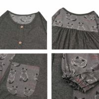 4. 割烹着 おしゃれ 保育士 カッポウ アラカルト 25AW アニマルモード柄 ネコ柄 前比翼釦あきスモック 25-8553 クスグル 割烹着 レディース 2025年秋冬 新作
