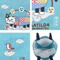 特 徴 :和風テイストのクスグルキャラクター達。表面はデニムのフェイクプリント仕上げ。しっかりしたキャンバス素材使用で、普段使いにぴったりなサイズのプチトートバッグです。便利な内ポケット付きです。