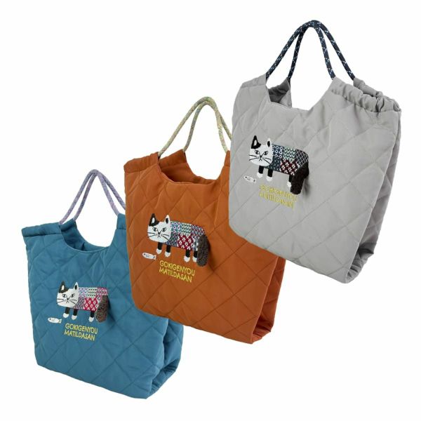 特 徴 :軽くて機能的、さらに水や汚れに強い頼もしい撥水加工のキルトバッグたち。ふんわりしたキルトにマチルダさんの存在感のある繊細な刺繍が印象的です。持ち手にロゴ入りテープやパラコードを使用したこだわりのあるバッグたちです。