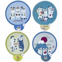 コメント:人気者のネコまるけとマチルダさん柄のくるくるうちわ。パンッ!って広げて8の字にくるりんとねじって畳んでね♪