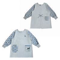 コメント:袖にモノグラム風プリントを使用したカジュアルなカッポウ。袖口もリブ仕様なのでお家着感覚で着ることができます。